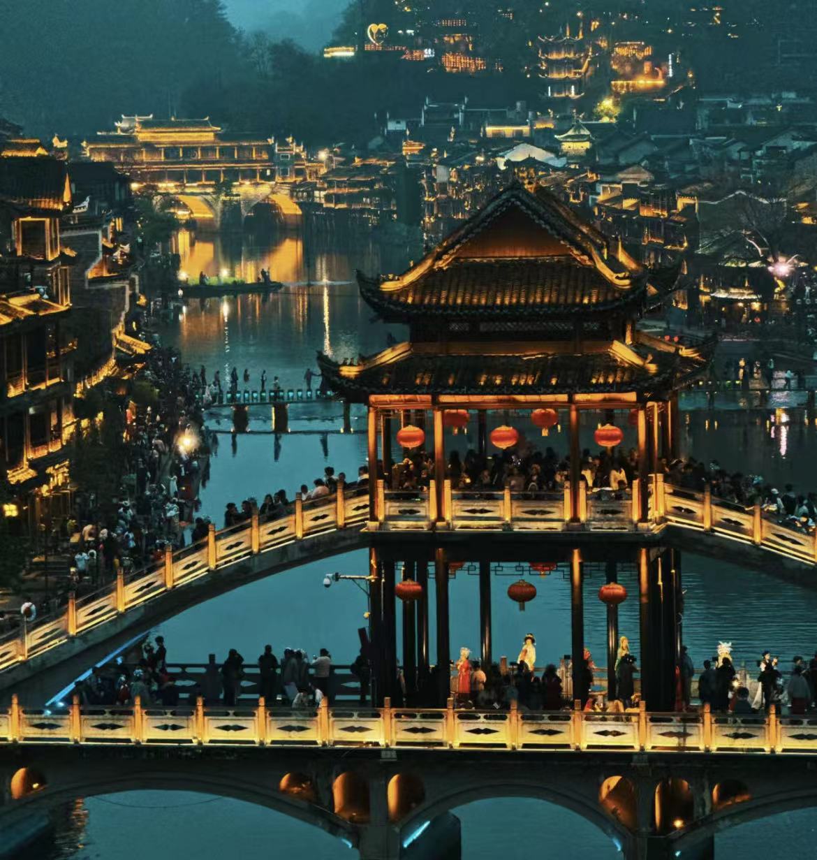 早餐后前往宋祖英的家乡、大湘西地区最大、最美丽、民俗风情最浓郁的国家AAA景区,被誉为“千里苗疆第一寨”——【墨戎苗寨】(门票已赠送)。对了歌、喝了酒、击完鼓,才能走进这个原始神秘的古苗寨,“竿子营”营房、烽火台流淌着历史的沧桑、苗族人的家国情怀、民族大义;去茶农家里品鉴最好的“有机茶”——“古丈毛尖”;打上了08奥运开幕式的墨戎“四方鼓舞”,会让您感受到战神蚩尤出征的震撼,秋实丰收的喜悦;精彩绝伦的各种苗族手工纺织、锻制技艺让人叹为观止;神秘的湘西巫术更会让您瞠目结舌、目瞪口呆……跳完竹竿摆手舞,就可以去体验苗家寨子里待客的最高礼遇——“长龙宴”了,那些热情的姑娘,一定要您对上苗家山歌之后,才会奉上筷子,和苗家阿妹一起载歌载舞,真正感受到苗族的人的真、善、美。