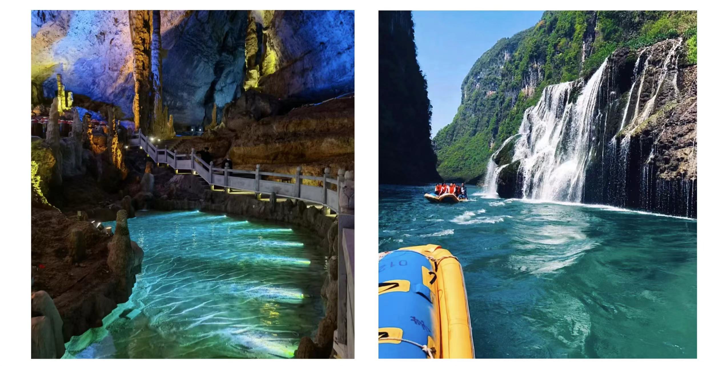 早餐后乘车前往前往【九天玄女洞】--“滴石铸玄女,暗河镂九天”。首先由专人带领一起“竹竿舞”,领略土家风情、后游览“亚洲第一洞”九天洞,面积250多万平方米,相当于400个标准足球场大小,被亿万游客誉为“世界奇迹”、“亚洲最大、世界最奇”、“溶洞女王”。后游览【茅岩河平湖游】,茅岩河是一幅多彩多姿、生动活泼的水国画,是一帧竞奇斗艳、婀娜多娇的青山图。然后游玩【茅岩河漂流】项目(平湖游和漂流为赠送项目,若因天气原因无法游玩漂流或自身原因不参加,费用不退),目前已成为中国最大的和最安全的旅游漂流项目,是张家界“山、水、洞”旅游精品项目中最富刺激的项目。与浪共舞,一漂难忘,驾橡皮舟沿茅岩河漂流而下,漂流水程20公里,落差66米,有惊无险的河滩共55个。结束茅岩河漂流行程后乘车返回张家界市区,入住酒店休息
