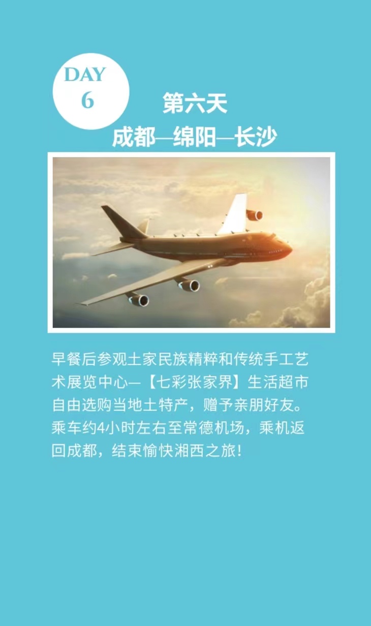 第六天:成都—绵阳—长沙(参考航班:MU9886 15:20-17:25)