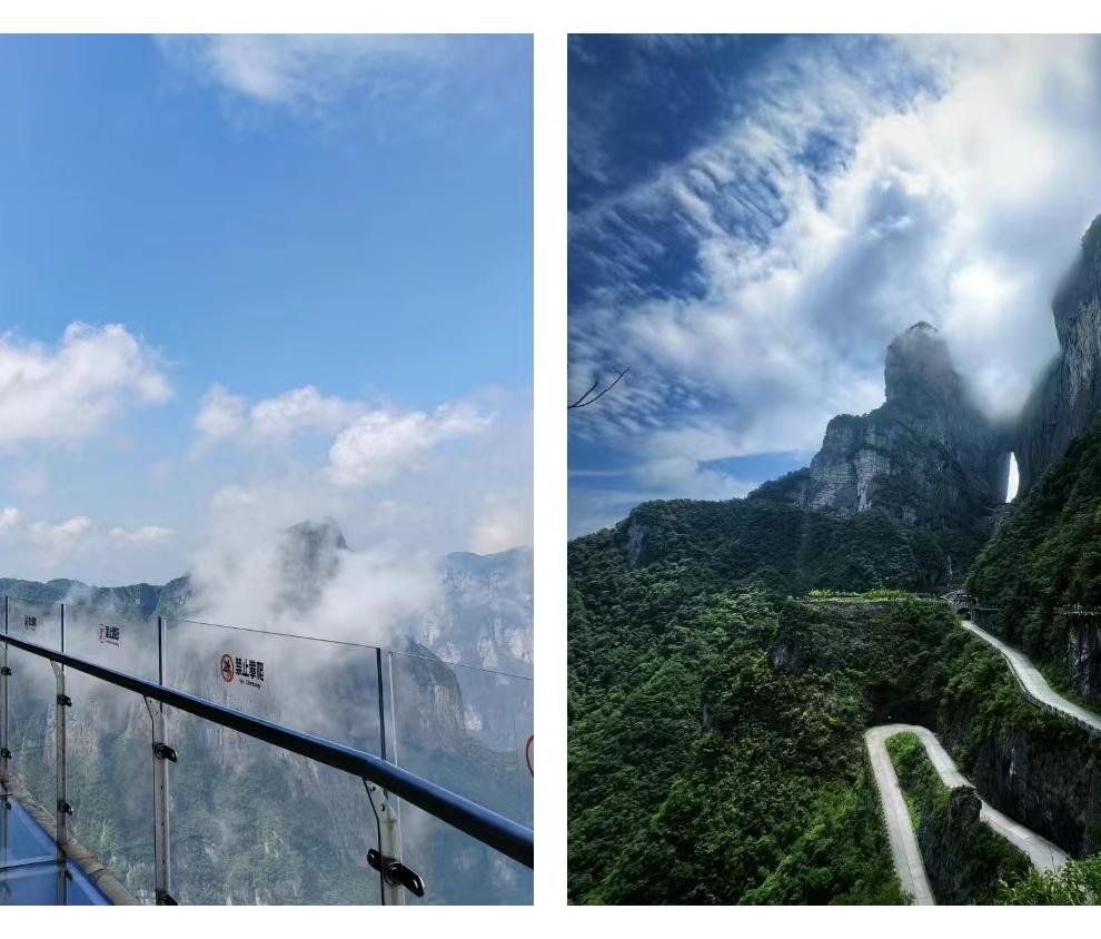 早餐后游览“人类第一次架机穿越自然山洞”、“中国最受外国人欢迎的五十个地方之一”“俄罗斯苏-30战斗机飞行表演地”——【天门山国家森林公园】,乘坐世界最长的高山客运索道——【天门山索道】,体验凌空飞仙般的神奇感觉,空中欣赏壮丽的山水画长卷,直达天门山山顶,观赏奇妙美丽的盆景花园,游览天门翻水、北俯视天门、登云梦仙顶、【玻璃栈道】、天门山寺、体验“云生脚下、奇峰尽览、万象目中”豪迈感觉。山顶游玩后座索道下山至中转站换乘环保车,感受“天下第一公路奇观”——【通天大道】的惊奇体验沿途观赏七级瀑布、金龟驮元宝、将军峰、箭杆峰等景观。抵达上天梯,攀登999级台阶的上天梯,抵达天门洞底,感受造化神奇,尽情欣赏天门洞内外的壮丽景色。晚上居住禾田居帐篷:户外帐篷是撑在地上遮风避雨、日光并供的临时居住的棚子,多用帆布做成,连同支撑用的东西,可随时拆下转移;被称为“移动的家”。