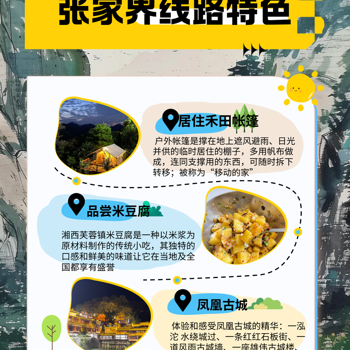 早餐后参观【湖南印象张家界】土特产超市,随后抵达【芙蓉镇】本名王村,又称“挂在瀑布上的千年古镇”有酉阳雄镇、“小南京”之美誉。后因姜文和刘晓庆主演的电影《芙蓉镇》在此拍摄,更名为“芙蓉镇”古色古香的吊脚楼、数百年遗留下来的【溪州铜柱】【土司王行宫飞水寨】、芙蓉镇瀑布、可以品尝到刘晓庆主演《芙蓉镇》剧中米豆腐店中的米豆腐!车赴游览被著名的社会学家费孝通先生誉为“天下第一漂”之称的【猛洞河漂流】。