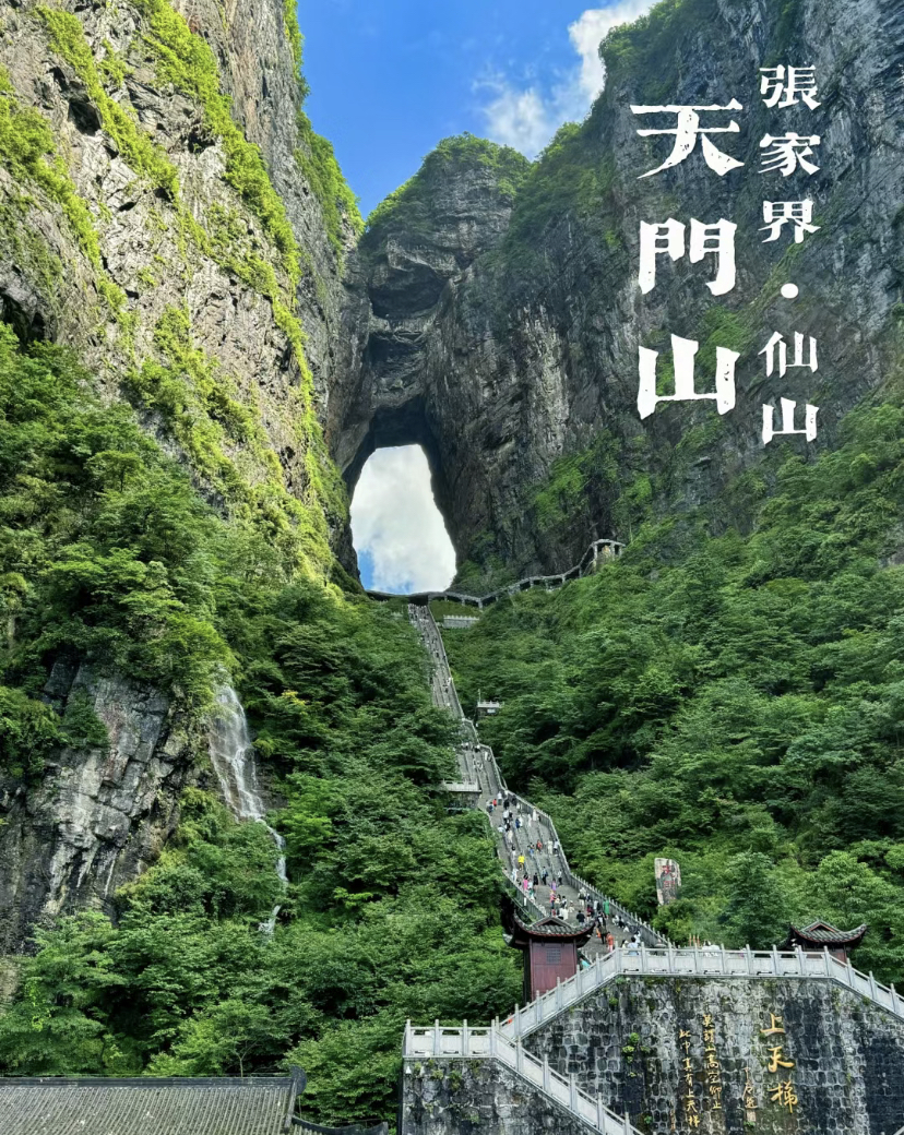 早餐后游览“人类第一次架机穿越自然山洞”、“中国最受外国人欢迎的五十个地方之一”“俄罗斯苏-30战斗机飞行表演地”——【天门山国家森林公园】,乘坐世界最长的高山客运索道——【天门山索道】,体验凌空飞仙般的神奇感觉,空中欣赏壮丽的山水画长卷,直达天门山山顶,观赏奇妙美丽的盆景花园,游览天门翻水、北俯视天门、登云梦仙顶、【玻璃栈道】、天门山寺、体验“云生脚下、奇峰尽览、万象目中”豪迈感觉。山顶游玩后座索道下山至中转站换乘环保车,感受“天下第一公路奇观”——【通天大道】的惊奇体验沿途观赏七级瀑布、金龟驮元宝、将军峰、箭杆峰等景观。抵达上天梯,攀登999级台阶的上天梯,抵达天门洞底,感受造化神奇,尽情欣赏天门洞内外的壮丽景色。
