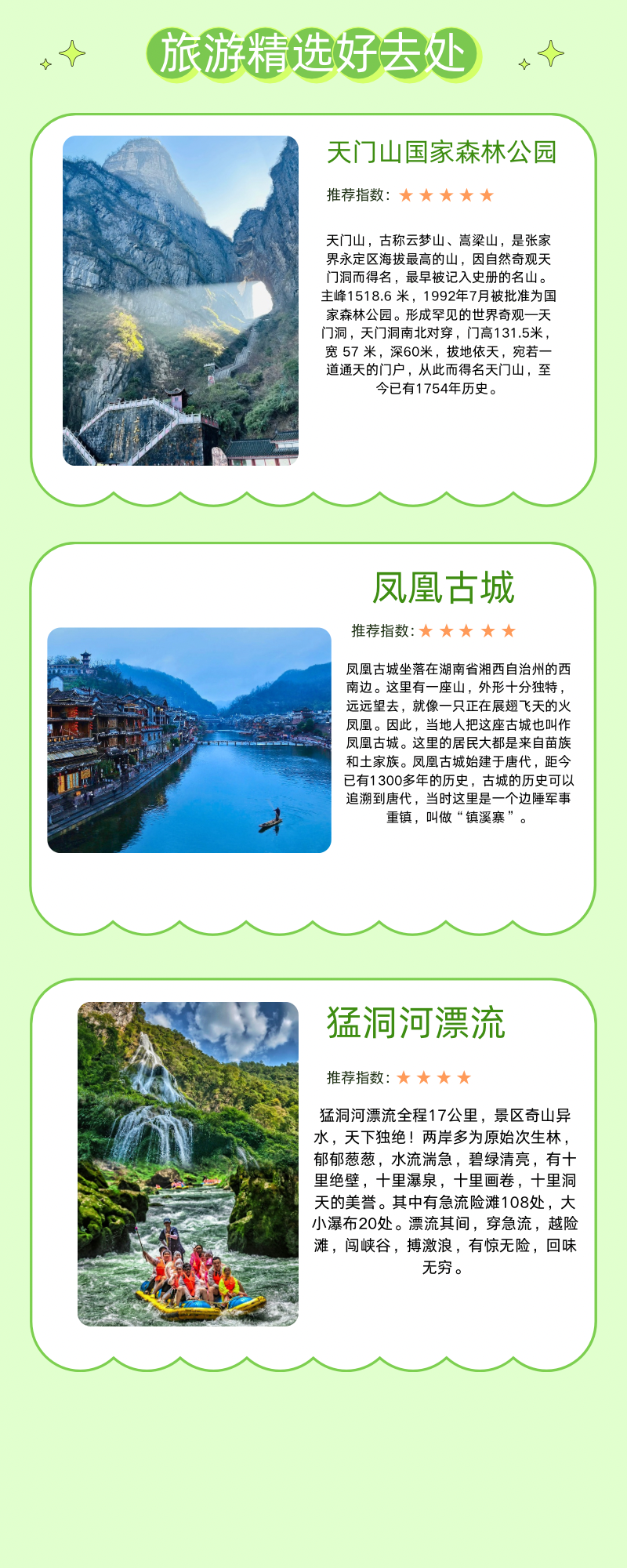 早餐后参观【湖南印象张家界】土特产超市,随后抵达【芙蓉镇】本名王村,又称“挂在瀑布上的千年古镇”有酉阳雄镇、“小南京”之美誉。后因姜文和刘晓庆主演的电影《芙蓉镇》在此拍摄,更名为“芙蓉镇”古色古香的吊脚楼、数百年遗留下来的【溪州铜柱】【土司王行宫飞水寨】、芙蓉镇瀑布、可以品尝到刘晓庆主演《芙蓉镇》剧中米豆腐店中的米豆腐!车赴游览被著名的社会学家费孝通先生誉为“天下第一漂”之称的【猛洞河漂流】。
