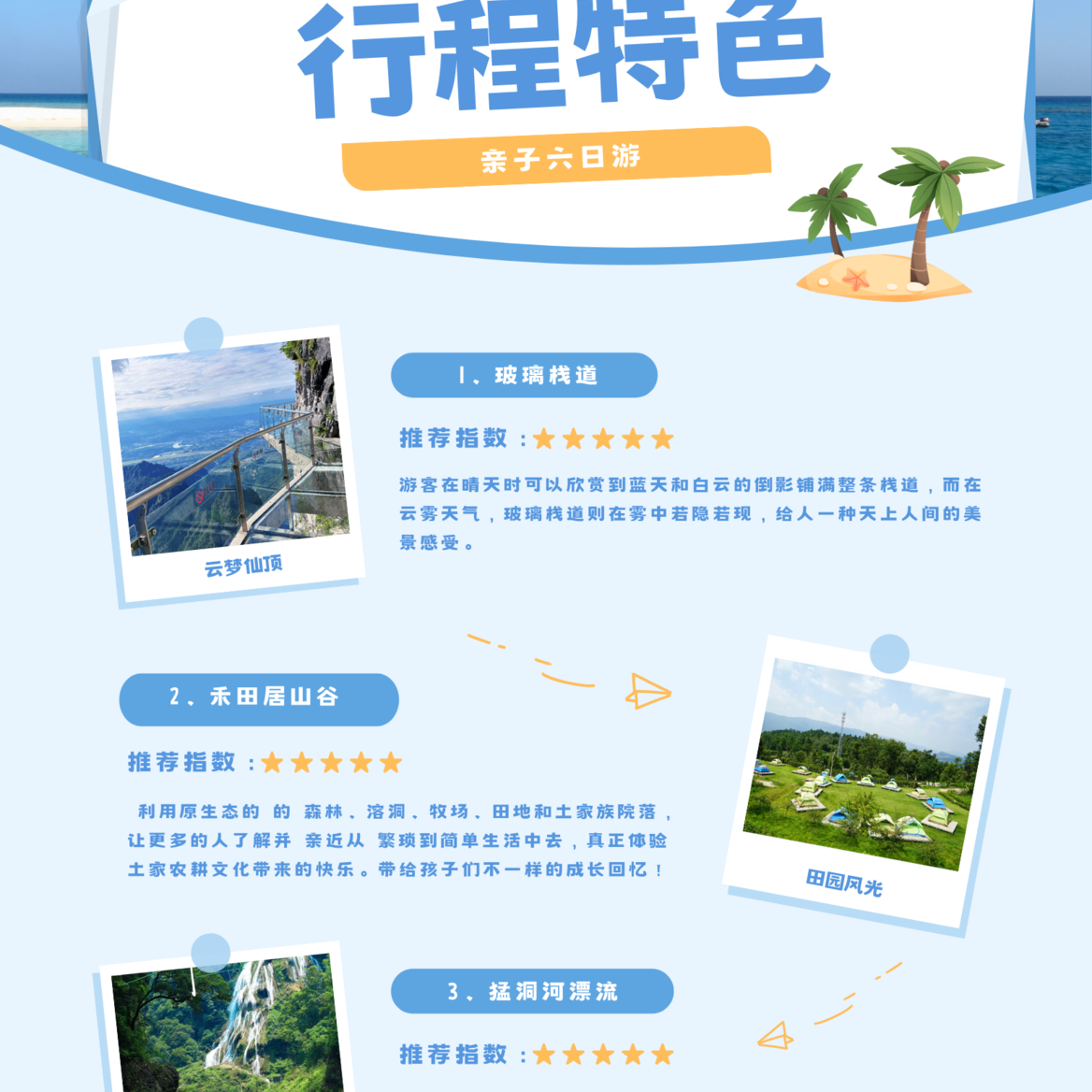 早餐后游览“人类第一次架机穿越自然山洞”、“中国最受外国人欢迎的五十个地方之一”“俄罗斯苏-30战斗机飞行表演地”——【天门山国家森林公园】,乘坐世界最长的高山客运索道——【天门山索道】,体验凌空飞仙般的神奇感觉,空中欣赏壮丽的山水画长卷,直达天门山山顶,观赏奇妙美丽的盆景花园,游览天门翻水、北俯视天门、登云梦仙顶、【玻璃栈道】、天门山寺、体验“云生脚下、奇峰尽览、万象目中”豪迈感觉。山顶游玩后座索道下山至中转站换乘环保车,感受“天下第一公路奇观”——【通天大道】的惊奇体验沿途观赏七级瀑布、金龟驮元宝、将军峰、箭杆峰等景观。抵达上天梯,攀登999级台阶的上天梯,抵达天门洞底,感受造化神奇,尽情欣赏天门洞内外的壮丽景色。