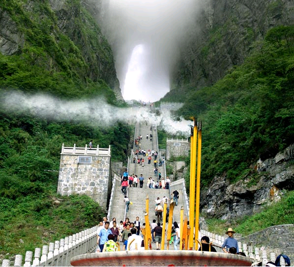 早餐后游览“人类第一次架机穿越自然山洞”、“中国最受外国人欢迎的五十个地方之一”“俄罗斯苏-30战斗机飞行表演地”——【天门山国家森林公园】,乘坐世界最长的高山客运索道——【天门山索道】,体验凌空飞仙般的神奇感觉,空中欣赏壮丽的山水画长卷,直达天门山山顶,观赏奇妙美丽的盆景花园,游览天门翻水、北俯视天门、登云梦仙顶、【玻璃栈道】、天门山寺、体验“云生脚下、奇峰尽览、万象目中”豪迈感觉。山顶游玩后座索道下山至中转站换乘环保车,感受“天下第一公路奇观”——【通天大道】的惊奇体验沿途观赏七级瀑布、金龟驮元宝、将军峰、箭杆峰等景观。抵达上天梯,攀登999级台阶的上天梯,抵达天门洞底,感受造化神奇,尽情欣赏天门洞内外的壮丽景色。晚上居住禾田居帐篷:户外帐篷是撑在地上遮风避雨、日光并供的临时居住的棚子,多用帆布做成,连同支撑用的东西,可随时拆下转移;被称为“移动的家”。
