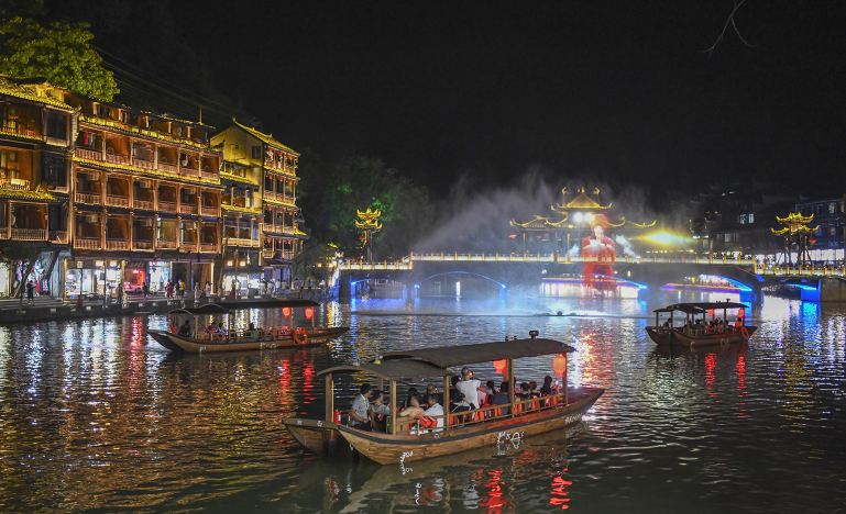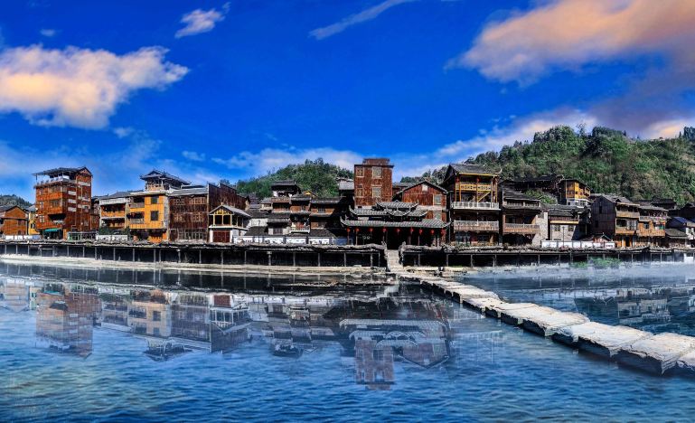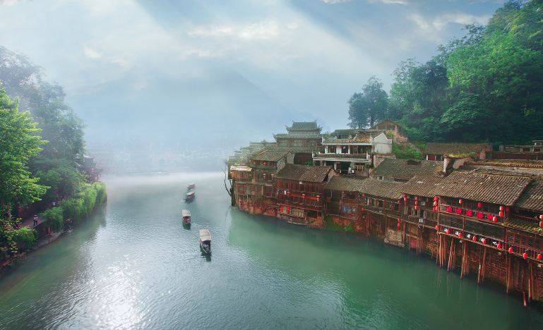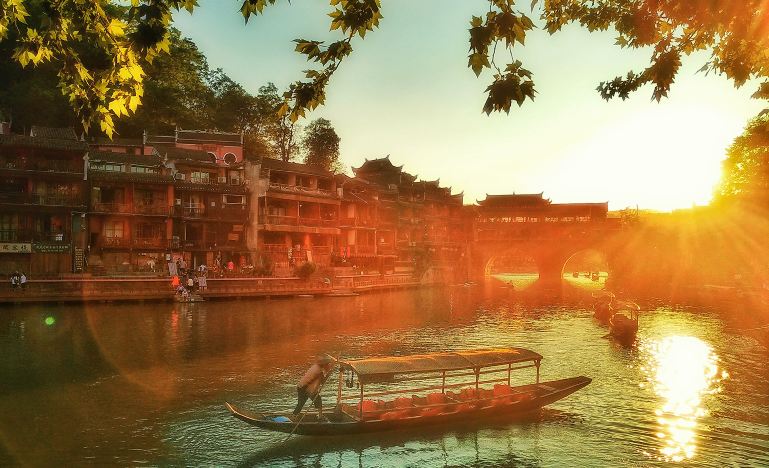 随着导游一起游览【沱江下游游船】(门票已含),坐上农家小船欣赏凤凰古城沱江下游的风光。