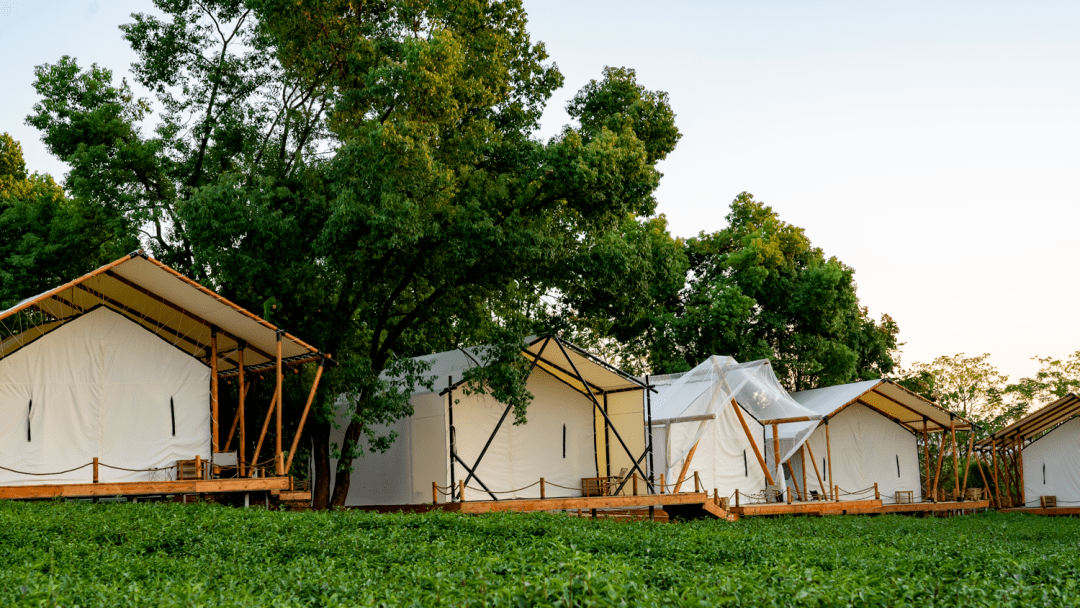晚上居住禾田居帐篷:户外帐篷是撑在地上遮风避雨、日光并供的临时居住的棚子,多用帆布做成,连同支撑用的东西,可随时拆下转移;被称为“移动的家”。