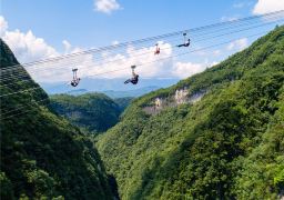乘坐“世界第一长高山客运索道,索道全长7455米,海拔1279米,体验腾云飞