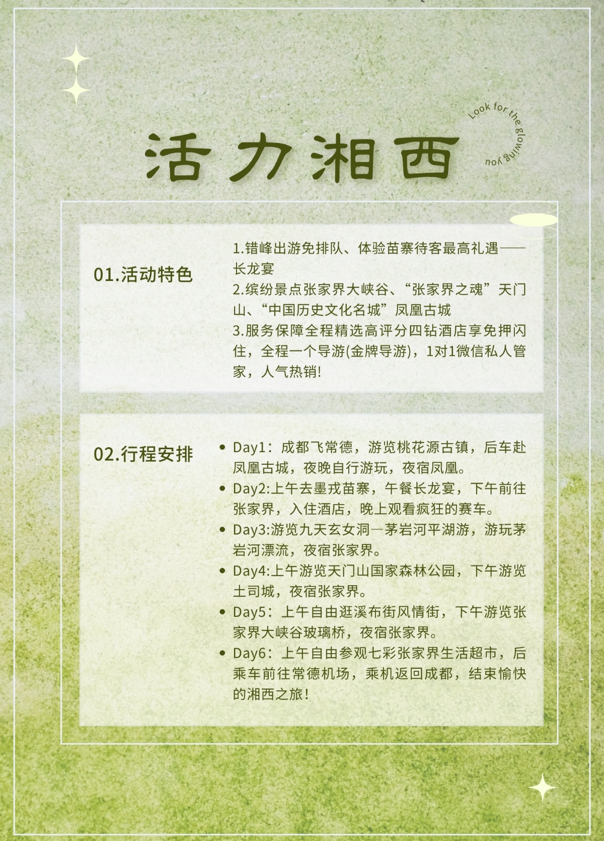 1、交通:成都—常德往返经济舱,含机场建设及燃油费;当地空调旅游大巴