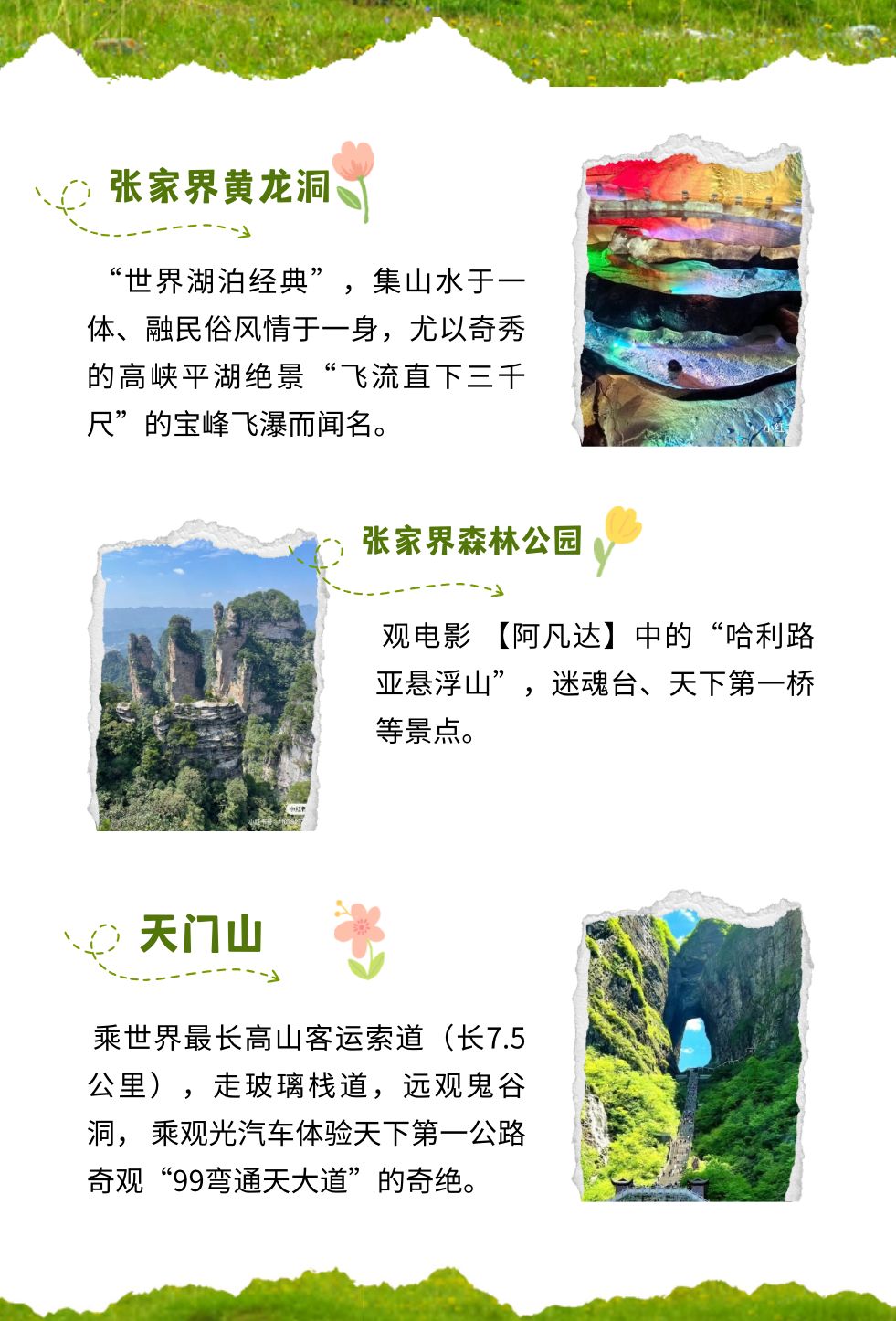 早餐后赴世界自然遗产武陵源风景区。乘百龙电梯上行VIP通道(72元/人,赠送),游览袁家界,观电影【阿凡达】中的“哈利路亚悬浮山”,迷魂台、天下第一桥等景点;中餐后乘景区环保车赴【杨家界景区】游览天然长城绝美峰墙、乌龙寨,乌龙寨原名叫“黑龙寨”,以前是土匪居住的地方,地处偏远、关隘险绝,四面悬崖,仅有一道上下,地势险要,所谓一夫当关,万夫莫开。之后乘坐百龙天梯下行VIP通道(72元/人,自理),游览十里画廊景区(游览时间不少于30分钟):采药老人、三姊妹峰、寿星迎宾等,后入住酒店。