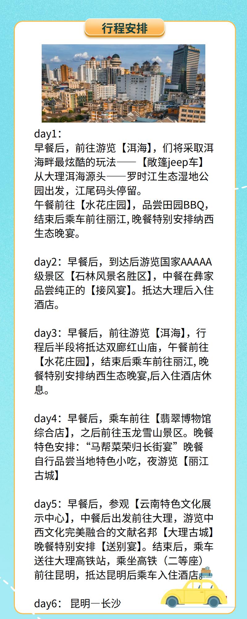 1、交通:长沙—昆明往返经济舱,含机场建设及燃油费;当地空调旅游大巴