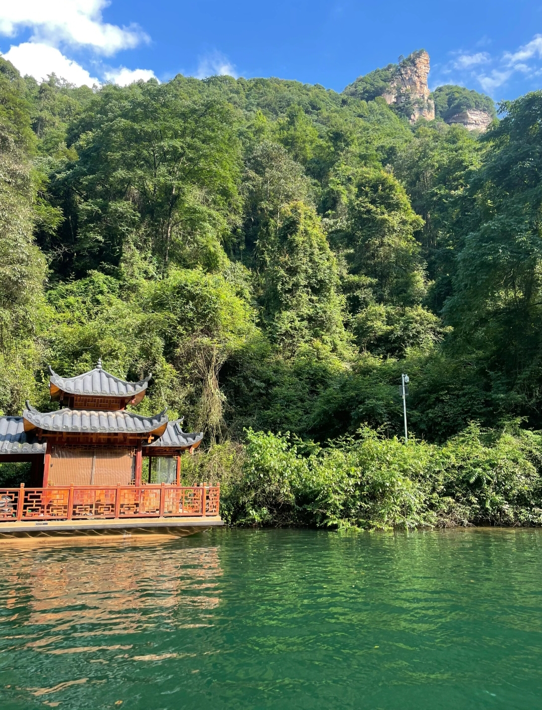 游览【张家界国家森林公园】-因溪水流经金鞭岩而得名的【金鞭溪】:张家界的黄金旅游区,水绕四门,蜿转曲折,幽静异常,随山而移,穿行在峰峦幽谷云间,迤逦延伸于鸟语花香之中(游览时间不少于2小时),车返市区,下午乘车返回张家界市区后自由活动(正常行车时间1小时,全程县道)。