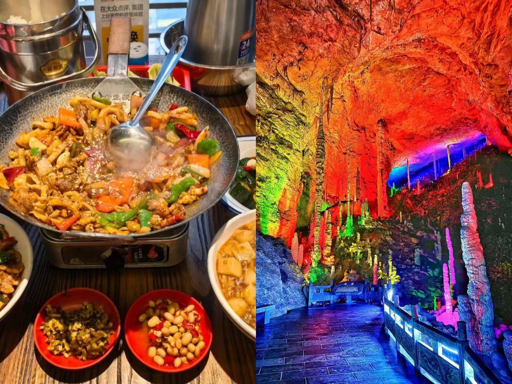 中餐升级为特色风味餐“三下锅”,张家界头牌菜,2009年荣登湖南14市州故乡菜之首。传明代嘉靖年间,朝廷征调湘鄂西土司兵上前线抗倭,恰好赶上年关,为不误军机,土司王下令提前—天过年,于是腊肉、豆腐、萝卜一锅煮,叫吃“合菜”,逐演变成“三下锅”。