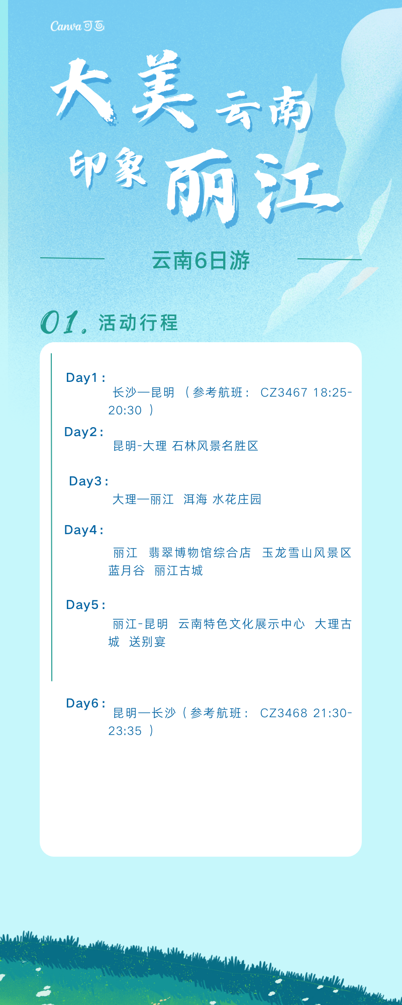 1、交通:长沙—昆明往返经济舱,含机场建设及燃油费;当地空调旅游大巴