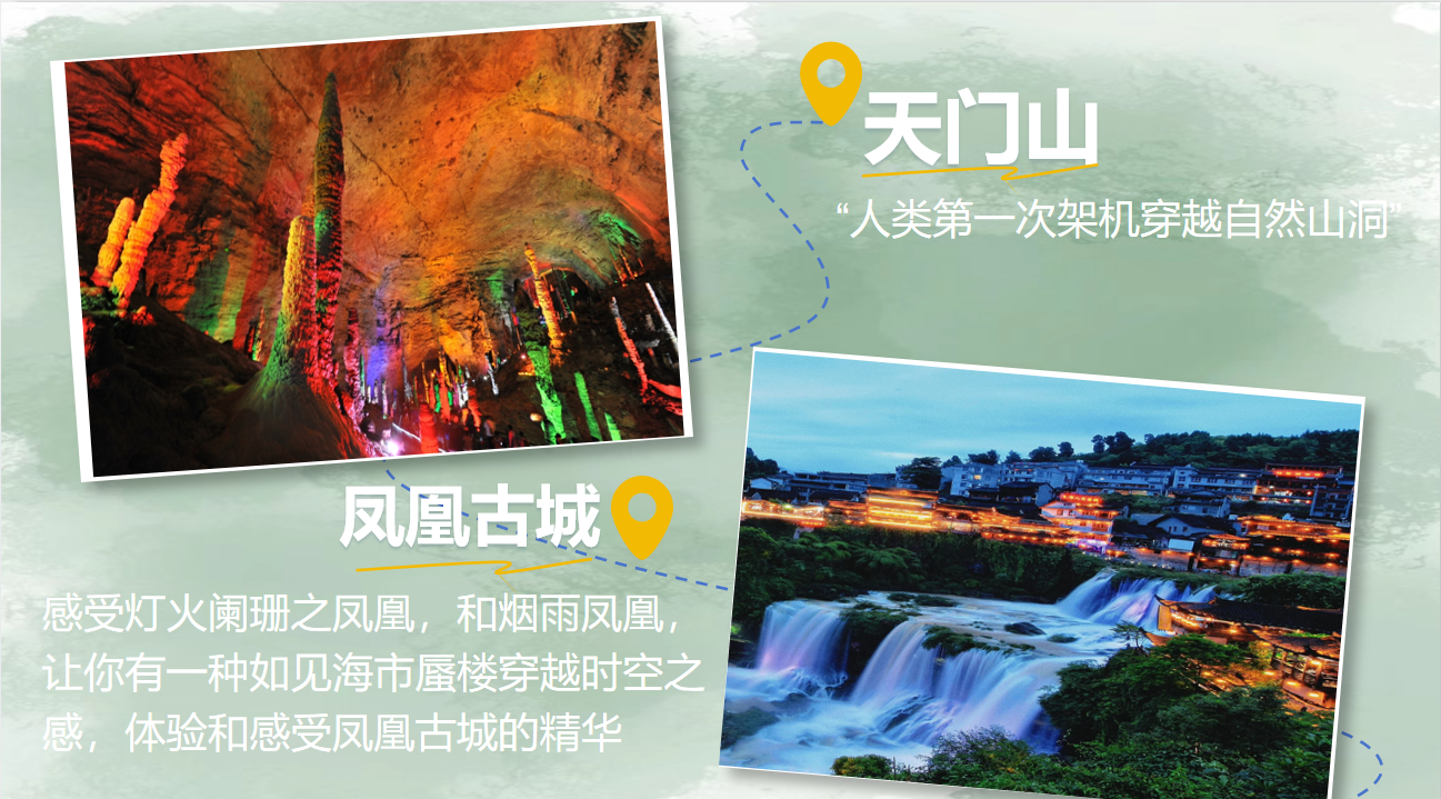 中餐后游览【黄龙洞景区】,洞中有洞,洞中有河,无奇不有,名副其实的“地下魔宫”,如有兴趣可自费游览宝峰湖景区:世界自然遗产、被称为“世界湖泊经典”,集山水于一体、融民俗风情于一身,尤以奇秀的高峡平湖绝景“飞流直下三千尺”的宝峰飞瀑而闻名。