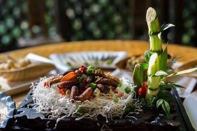 晚上:在兴文县城品尝苗家长桌宴,体验苗族的饮食文化,还可以尝尝兴文石海小龙虾、特色烤鱼等美食。