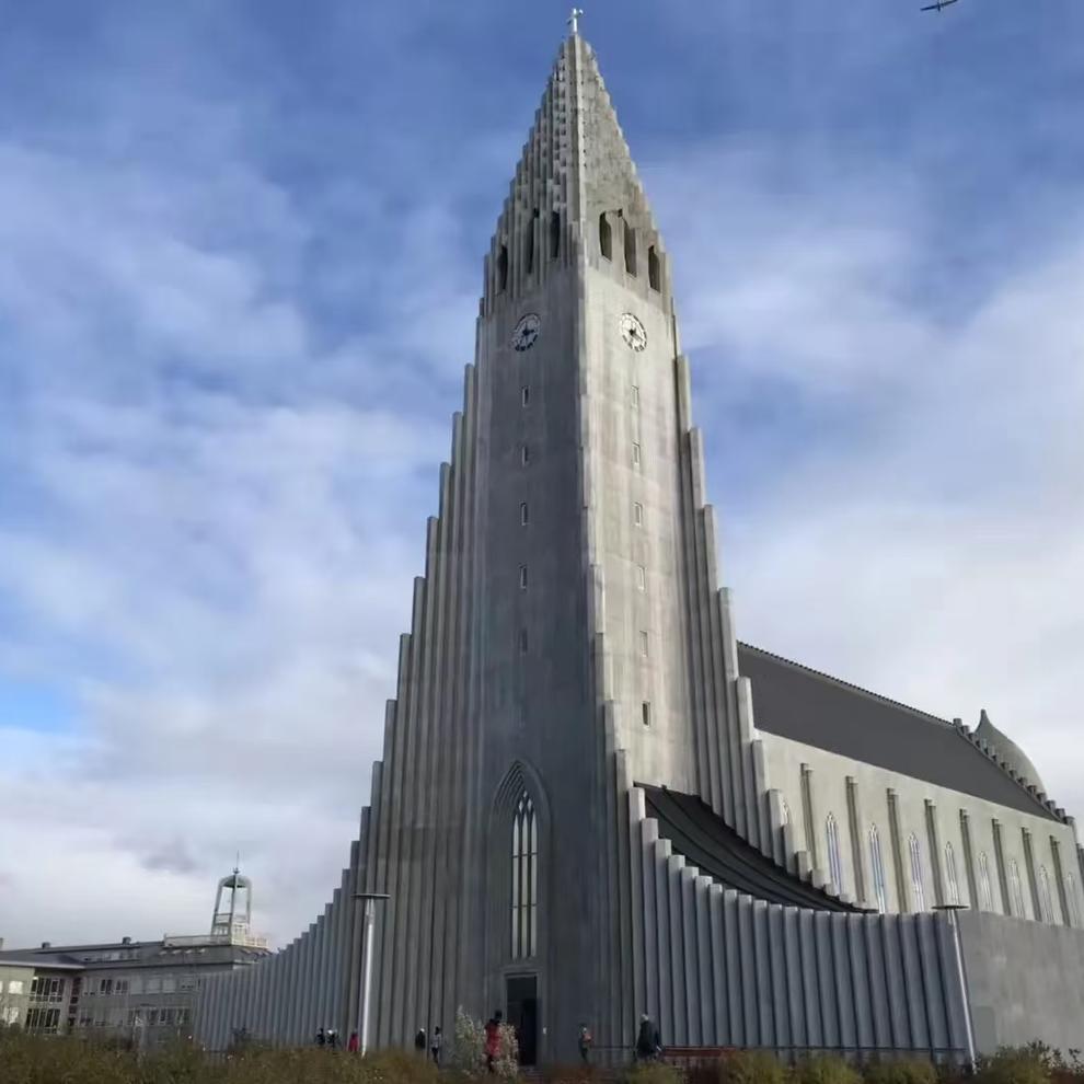 下午:前往哈尔格林姆斯教堂(Hallgrímskirkja):这座标志性的教堂不仅是雷克雅未克的地标,其独特的建筑风格也体现了冰岛的艺术特色。您可以参观教堂内部,欣赏其简洁而富有力量感的设计,还可以登上教堂塔楼,俯瞰城市全貌。