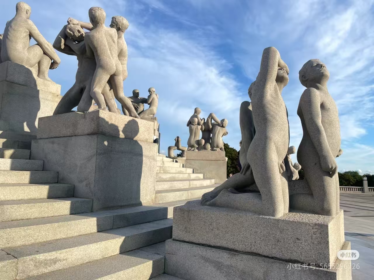 下午:前往维格拉雕塑公园,这是奥斯陆的标志性景点之一,以其独特的雕塑作品而闻名。您可以在这里漫步,欣赏古斯塔夫·维格兰创作的超过200尊雕塑,感受艺术与自然的完美结合。