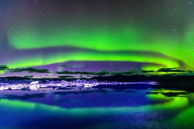 游玩乐途,山水常白:欣赏自然美景。观看北欧特有风光、山川湖泊与不冻港。冰岛追极光
