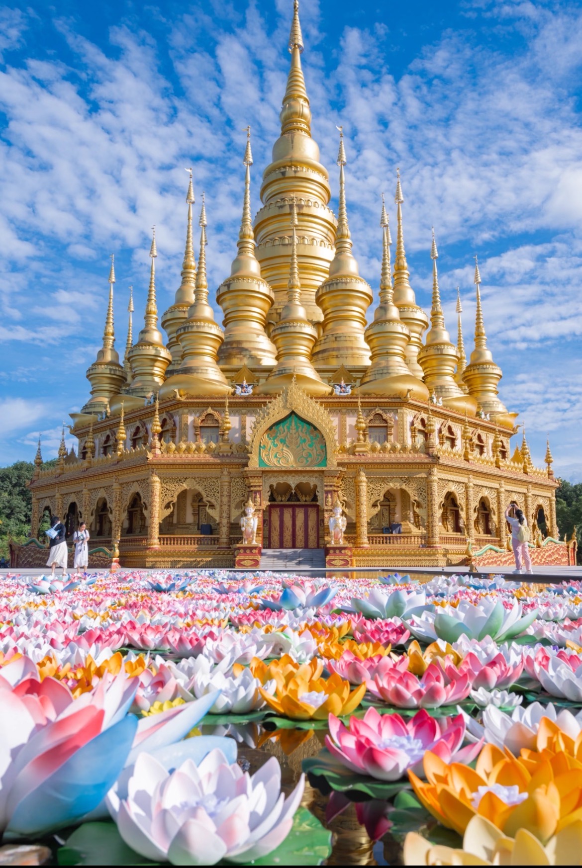 佛学院等建筑,殿内精美壁画讲述着佛教故事,处处透着静谧祥和这里不仅是礼佛圣地,还能体验傣族佛教文化,每逢重要佛事活动,会有诵经、滴水等仪式。漫步其间,既能感受宗教的肃穆,又能欣赏热