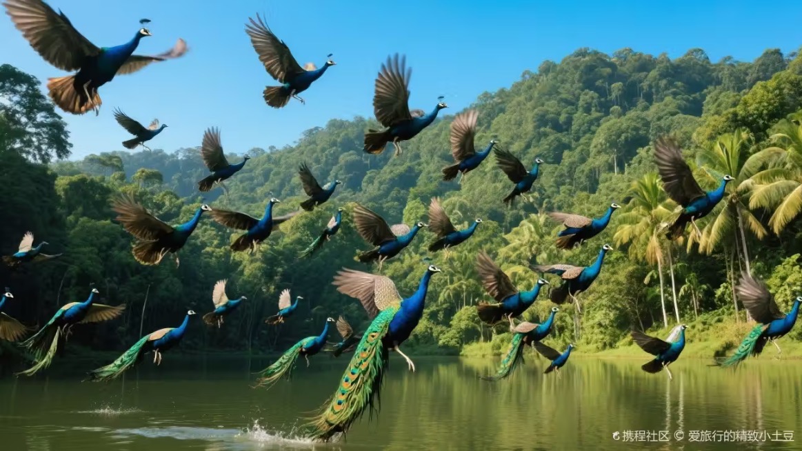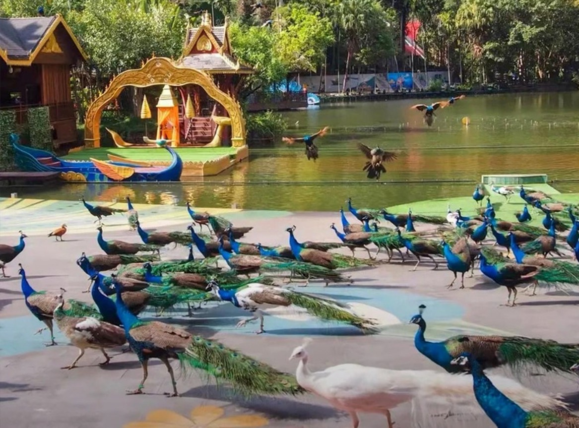 10:00:在勐泐大佛寺游览,这里每天都有孔雀放飞,成千上万只孔雀从大佛所在的山上飞下来,场面很壮观,寓意着吉祥如
