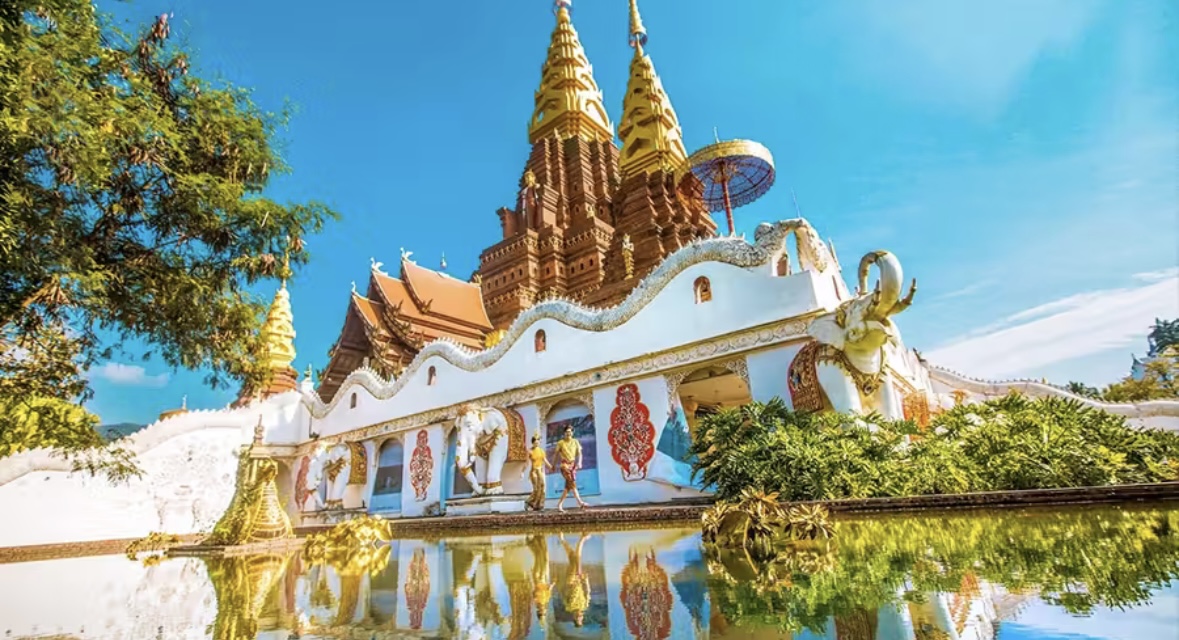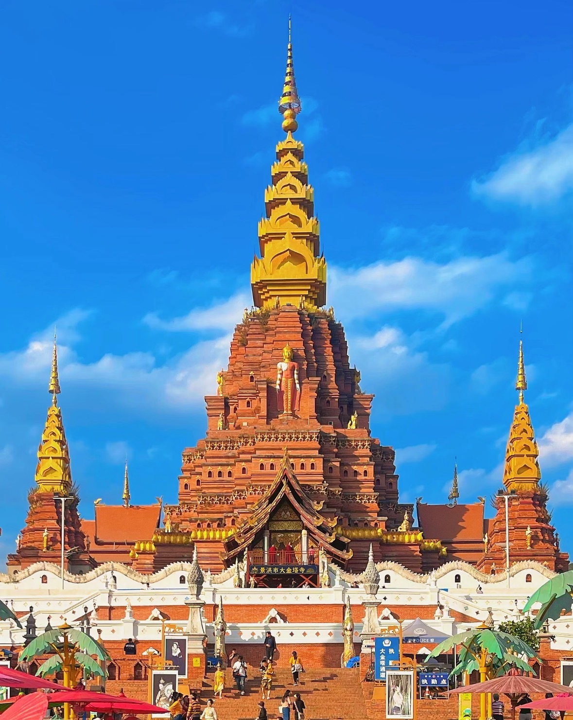 勐泐大佛寺它坐落于西双版纳景洪市,是在古代傣王御花园“勐泐故宫”旧址上重建的,还原了南传佛教古建筑风貌。步入景区,首先能看到高达45米的释迦牟尼佛露天铜像,雄伟庄严,是东南亚地区规模较大的佛教造像之一。沿着台阶向上,可参观大殿