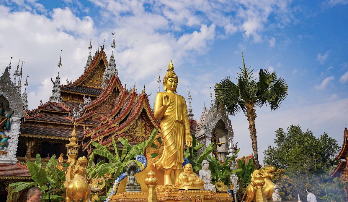 09:00:早餐后乘车出发,前往勐泐大佛寺,车程约1小时。勐泐大佛寺是在古代傣王国的王室寺院“景飘佛寺”原址上恢复重建的,