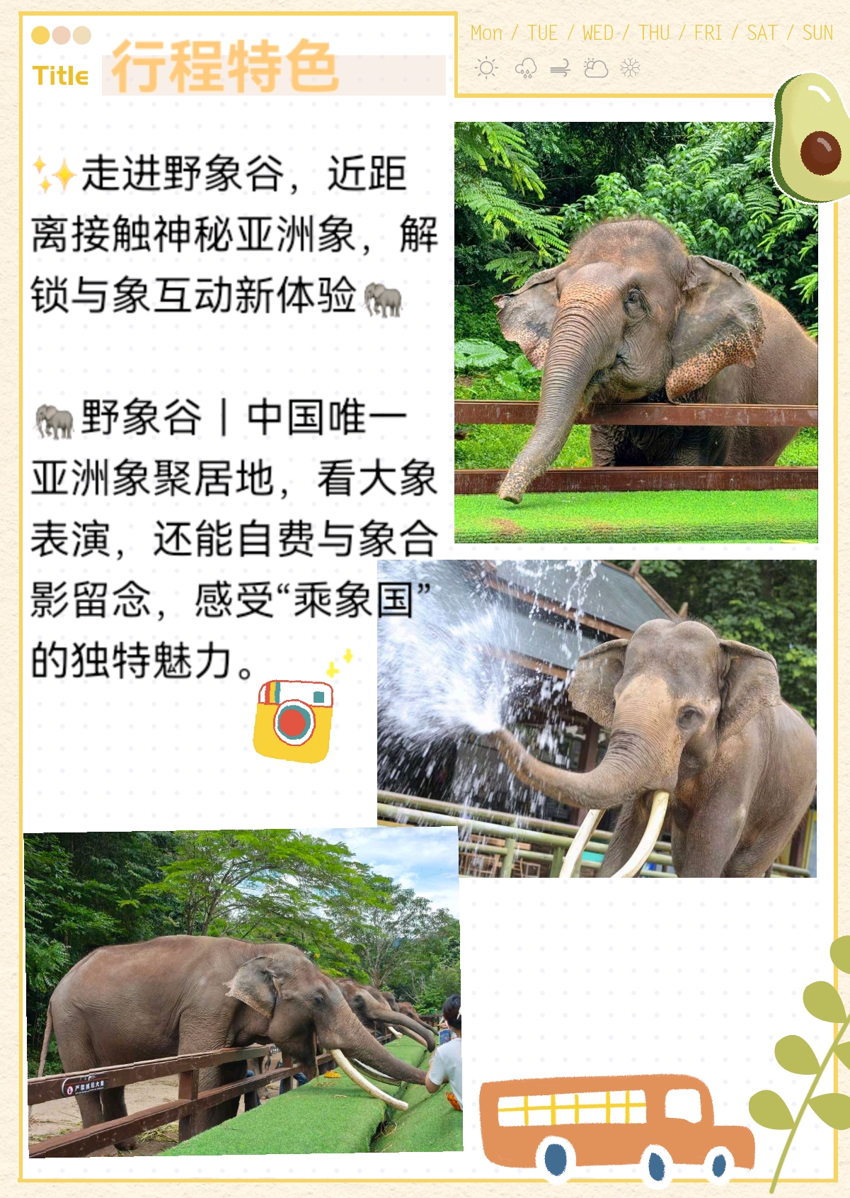 09:00:早餐后,沿着中国最美公路☀——思小公路出发,欣赏沿途美景,前往中国唯一亚洲象聚居地野象谷,车程约2小时。