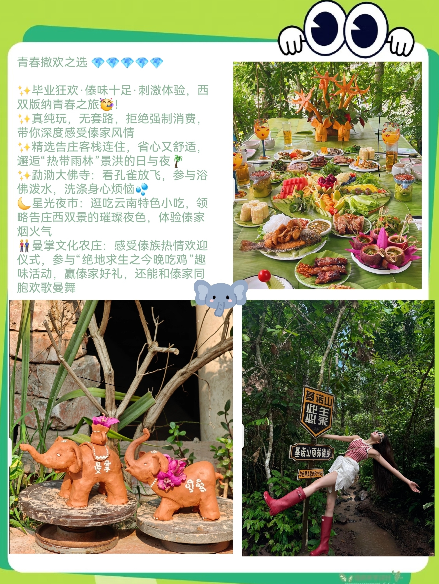澜沧江漂流能体验浪漫漂流与江中泼水;雨林部落风情岛可参与骑马、学习民族舞蹈等活动;