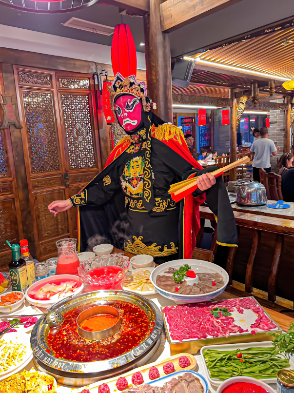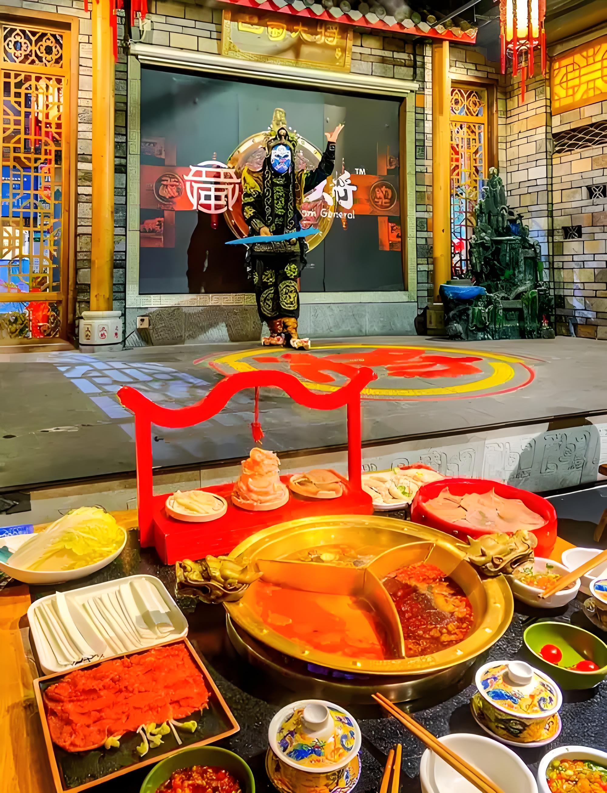 3、特色晚餐(变脸火锅晚会)让您品尝四川火锅的麻,辣,鲜,香辅以四川特色名小吃的同时观看集川剧变脸、峨眉武术、欢乐彝家等绝技60分钟的演出,晚会气势恢宏地再现了仙山峨眉千万年的历史沧桑和文化积淀。让您在边吃边看中欣赏富有浓郁乡土特色的技艺表演中,品味四川独特的民俗风情,于静逸中再现峨眉山水的秀美绝伦,于淡雅中享受旅游美食文化带来的乐趣。