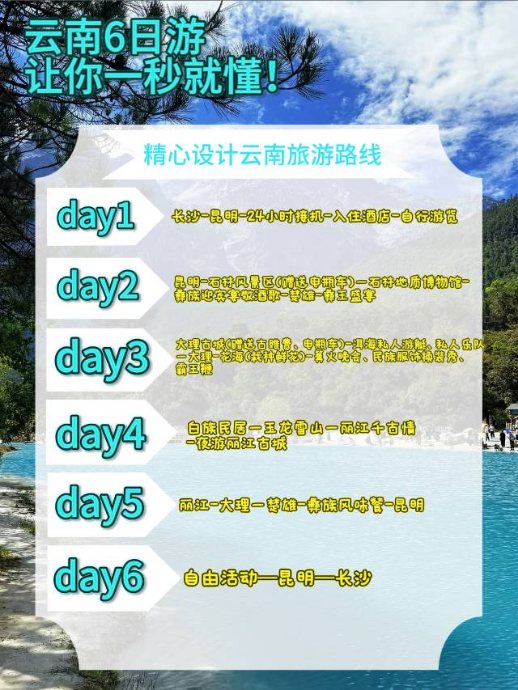 1、交通:长沙—昆明往返经济舱,含机场建设及燃油费;当地空调旅游大巴