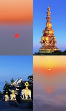 早餐后,前往峨眉山。【峨眉山-金顶】乘坐观光车(费用90元自理,上行索道80/下行索道40需自理)至雷洞坪,徒步至接引殿。峨眉金顶是以一尊48米高的十方普贤铜像为中心,由耀日的金殿、雄浑的铜殿、灼灼的银殿和洁白的朝圣大道组成的新金顶。金顶为峨眉山游程的最高峰,其海拔为3077米。顶上是个小平原,原有铜殿一座,在太阳的照射下,光彩夺目,故而得名金顶。登上金顶,人们顿觉万象排空,气势磅礴,惊叹天地之奇妙。在峨眉山金顶,还可能欣赏峨眉的四大奇景:日出、云海、佛光、圣灯。