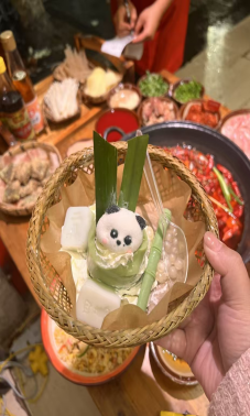 晚餐享用【熊猫主题小吃宴】:专属定制,精挑细选每一道本土小吃,吃的就是经典!凉菜:伤心凉粉、口味凉面,泡菜什锦;热菜:火锅冒菜,鸡汤耙耙菜,滋补银耳汤。