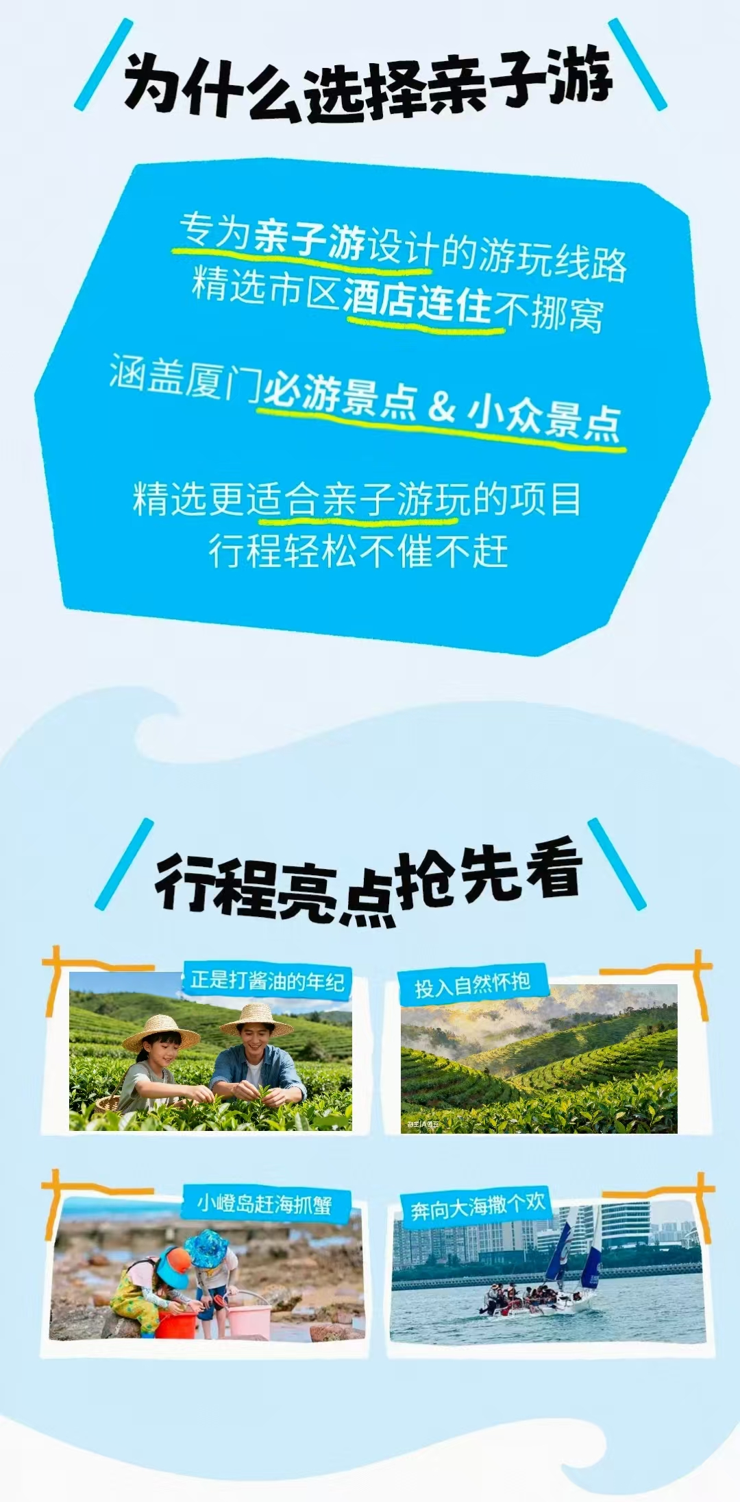 1、交通:长沙—厦门高铁二等座,当地空调旅游大巴,儿童报价不含高铁票