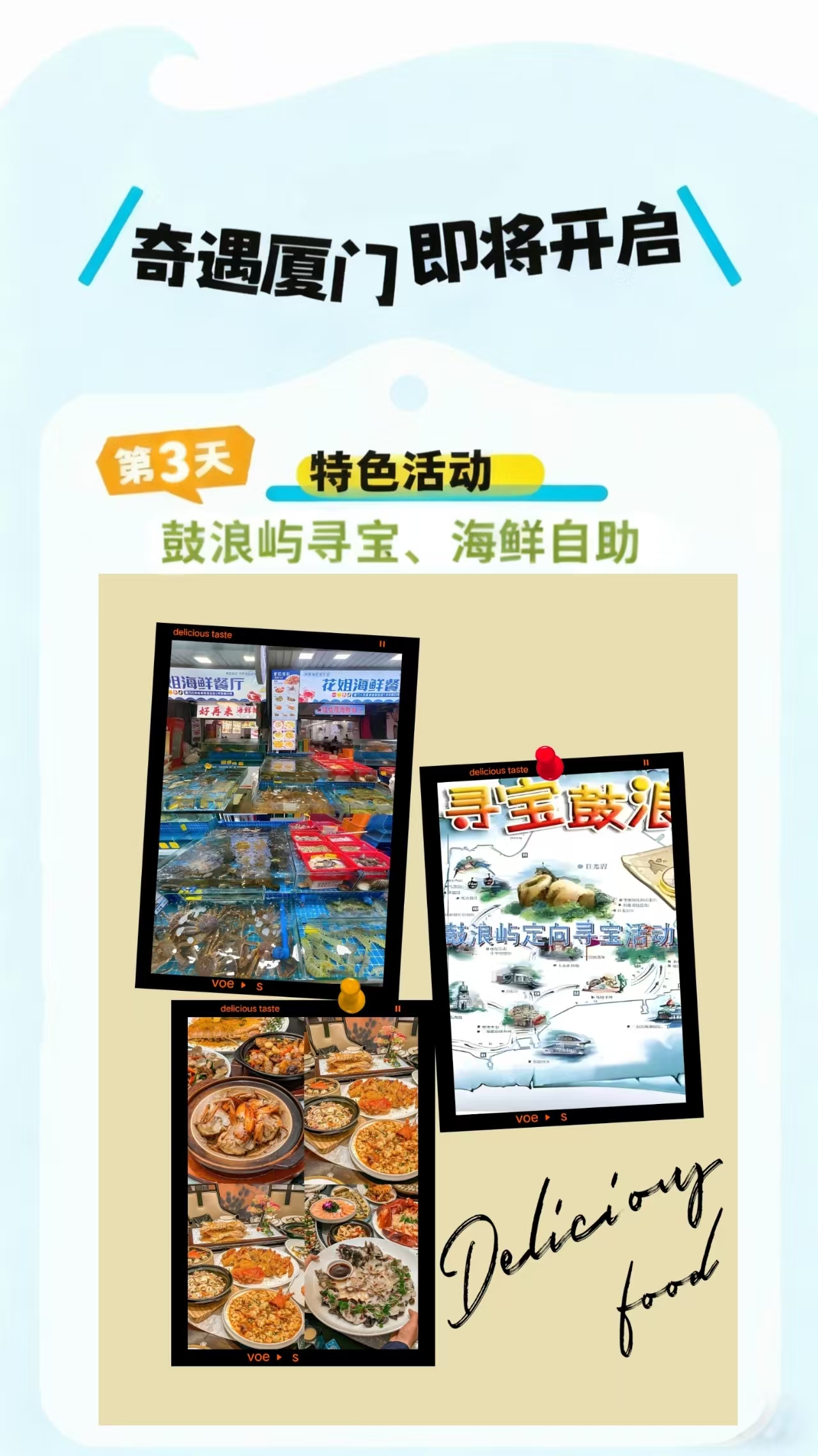 适时集合返回厦门,前往厦门最大的海鲜市场俗称【八市】每人分发30元采购基金,亲自采购晚餐食材,采购海鲜渔货,由餐厅免费加工哦。美美的海鲜大餐,立刻呈现在您的眼前。“八市”从上世纪二三十年代起,这里便是厦门的海鲜集散地。每天吸引大批厦门市民前来购物,外地游客也络绎不绝。八市里,你来我往的叫卖声必能让您充分感受到厦门的烟火气,满足您所有的市井想象。
