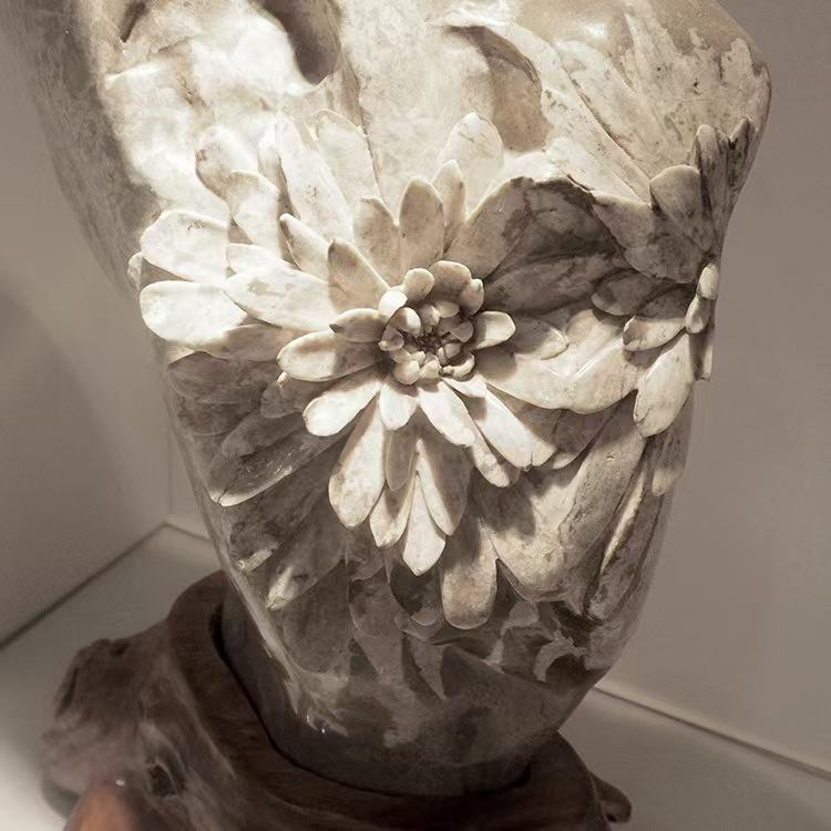 菊花石雕 :菊花石雕是中国三大石雕之一,核心产区为湖南浏阳,其历史始于清代乾隆年间。以菊花石为原料,依据其自然纹理、形态和色彩精心设计雕琢,将深灰色石材中蕴有的白色花纹,凸显成栩栩如生的菊花造型,是国家级非物质文化遗产。2006年被列入第一批国家级非物质文化遗产名录。
