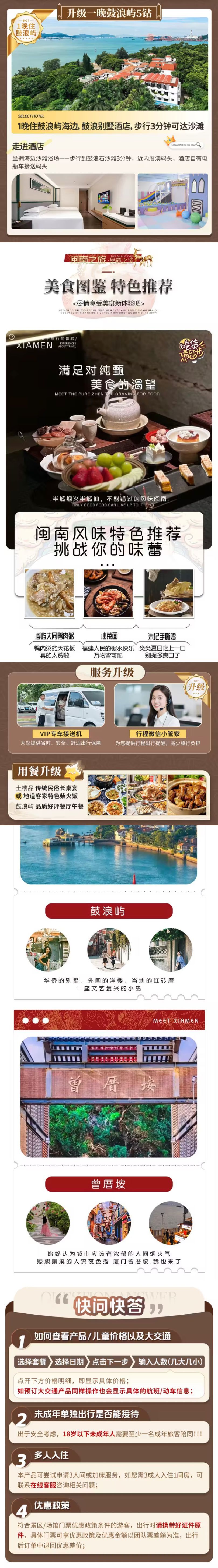 1.需求确认:客户与销售对接,明确旅游产品(如厦门五日游)的行程、人数、预算、特殊需求(如住宿标准、饮食禁忌)等核心信息,双方确认无误后进入下一步。