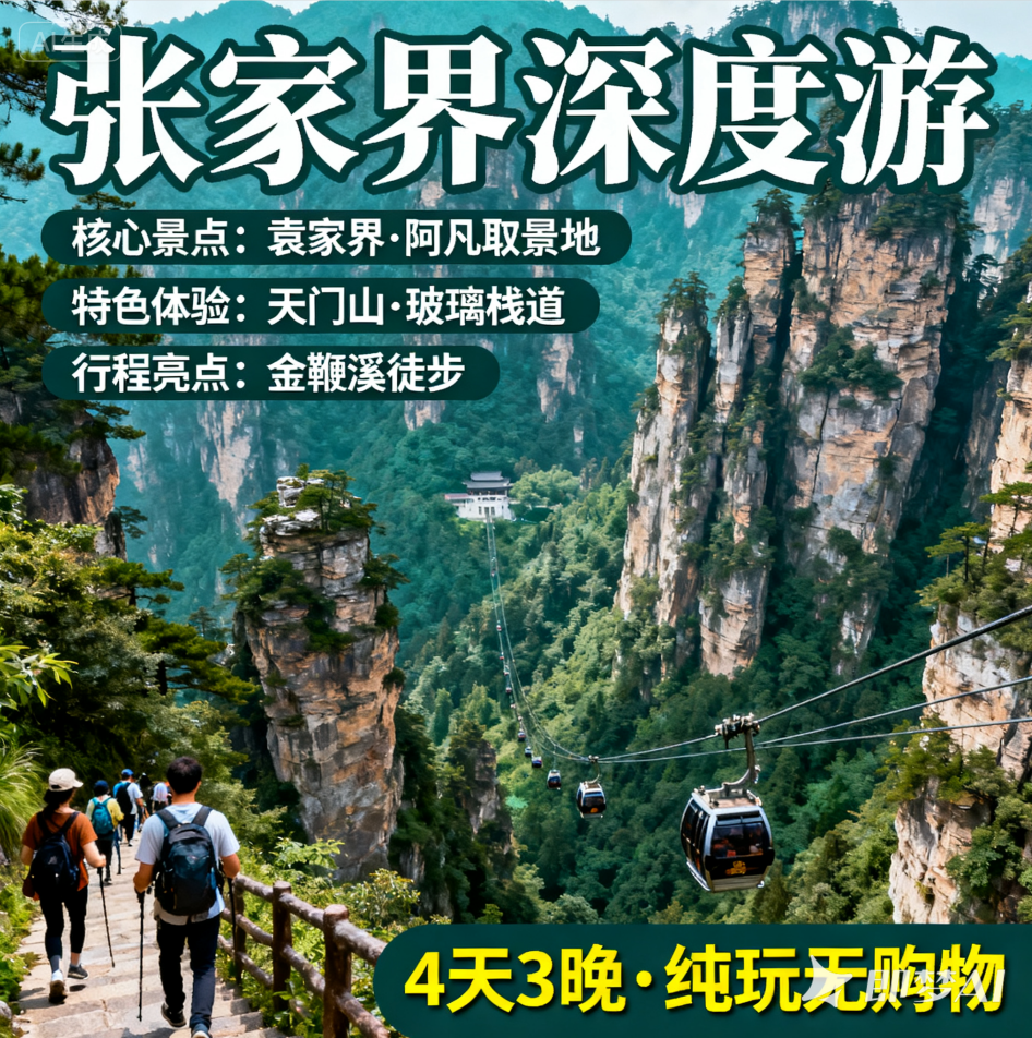早餐后赴世界自然遗产武陵源风景区。乘百龙电梯上行VIP通道(72元/人,赠送),游览袁家界,观电影【阿凡达】中的“哈利路亚悬浮山”,迷魂台、天下第一桥等景点;中餐后乘景区环保车赴【杨家界景区】游览天然长城绝美峰墙、乌龙寨,乌龙寨原名叫“黑龙寨”,以前是土匪居住的地方,地处偏远、关隘险绝,四面悬崖,仅有一道上下,地势险要,所谓一夫当关,万夫莫开。之后乘坐百龙天梯下行VIP通道(72元/人,自理),游览十里画廊景区(游览时间不少于30分钟):采药老人、三姊妹峰、寿星迎宾等,后入住酒店。