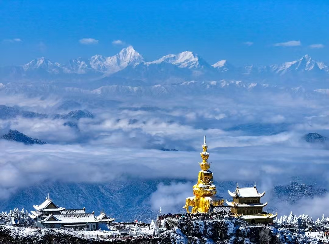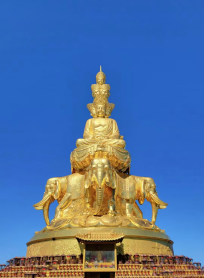 后出发游览【峨眉山—金顶】(游览时间约:2h),峨眉金顶是以一尊48米高的十方普贤铜像为中心,金顶为峨眉山游程的最高峰,其海拔为3077米。在峨眉山金顶,还可能欣赏峨眉的四大奇景:日出、云海、佛光、圣灯。