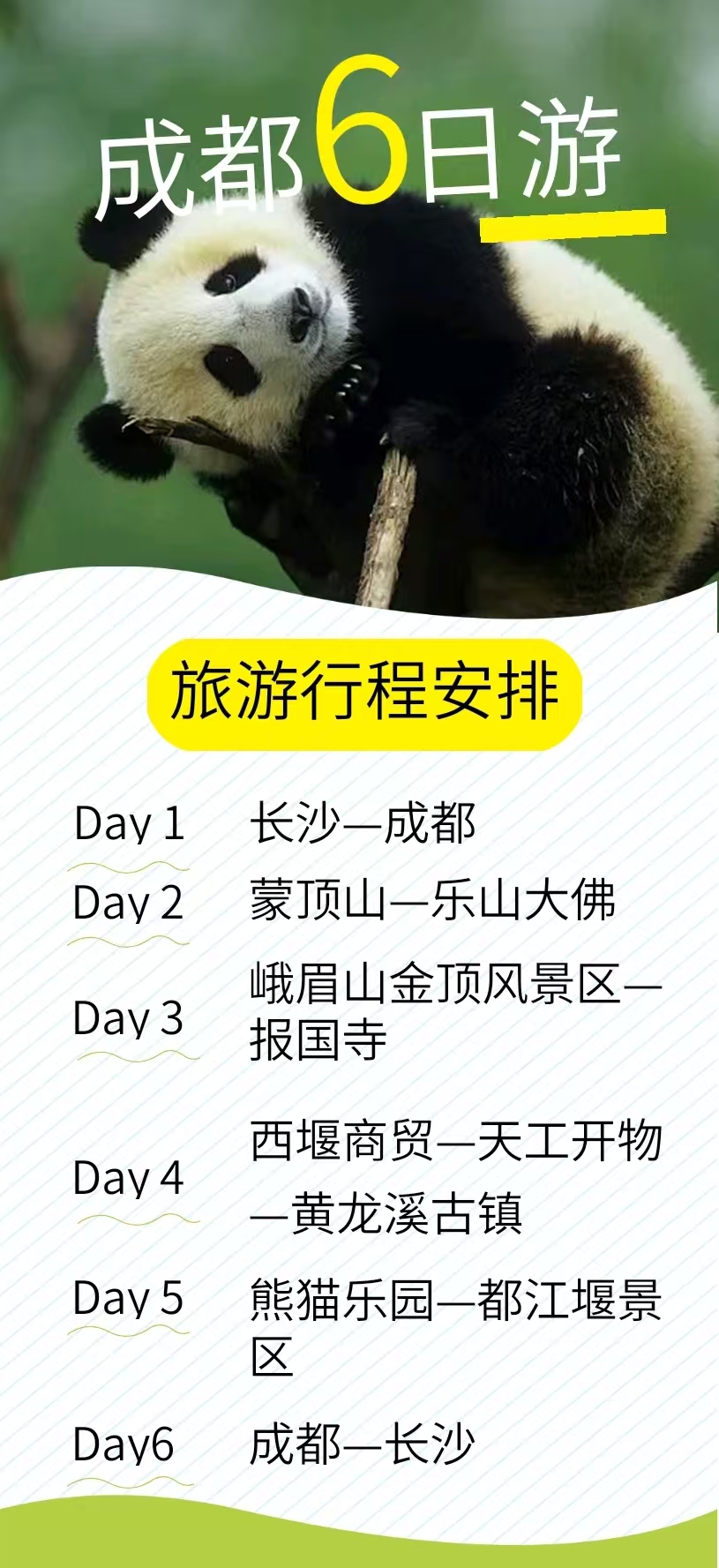 1、交通:长沙-成都经济舱,含机场建设及燃油费;当地空调旅游大巴