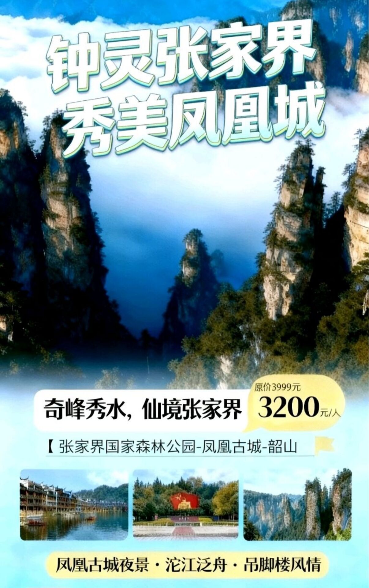 早餐后游览曾被新西兰著名作家路易艾黎称赞为中国最美丽的小城--【5A凤凰古城】感受灯火阑珊之凤凰,和烟雨凤凰,让你有一种如见海市蜃楼穿越时空之感,体验和感受凤凰古城的精华:一泓沱水绕城过、一条红红石板街、一道风雨古城墙、一座雄伟古城楼、一个美丽彩虹桥、一排小桥吊脚楼。之后驱车前往长沙。