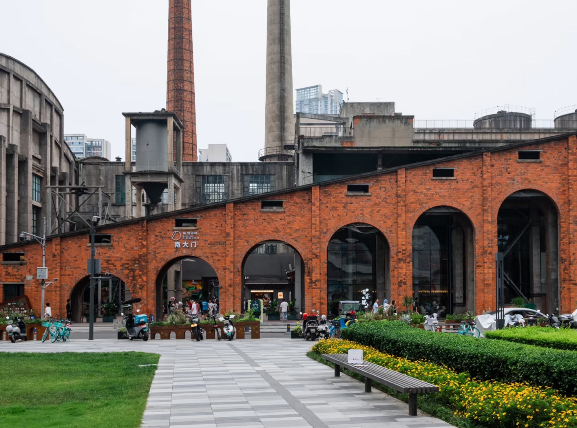饭后前往东郊记忆,身为成都国营红光电子管厂,通过保留工业遗址与现代艺术装置结合,形成“工业废墟美学”,以“工业遗产活化+场景叙事+内容共创”的模式,打造了一个兼具文化认同与消费吸引力的新物种。园区保留了大量老厂房的红砖结构、巨型管道、钢铁构架等工业元素(如红砖小巷、蒸汽火车头),这些建筑遗迹带着上世纪的工业质感,是城市工业历史的鲜活印记。
