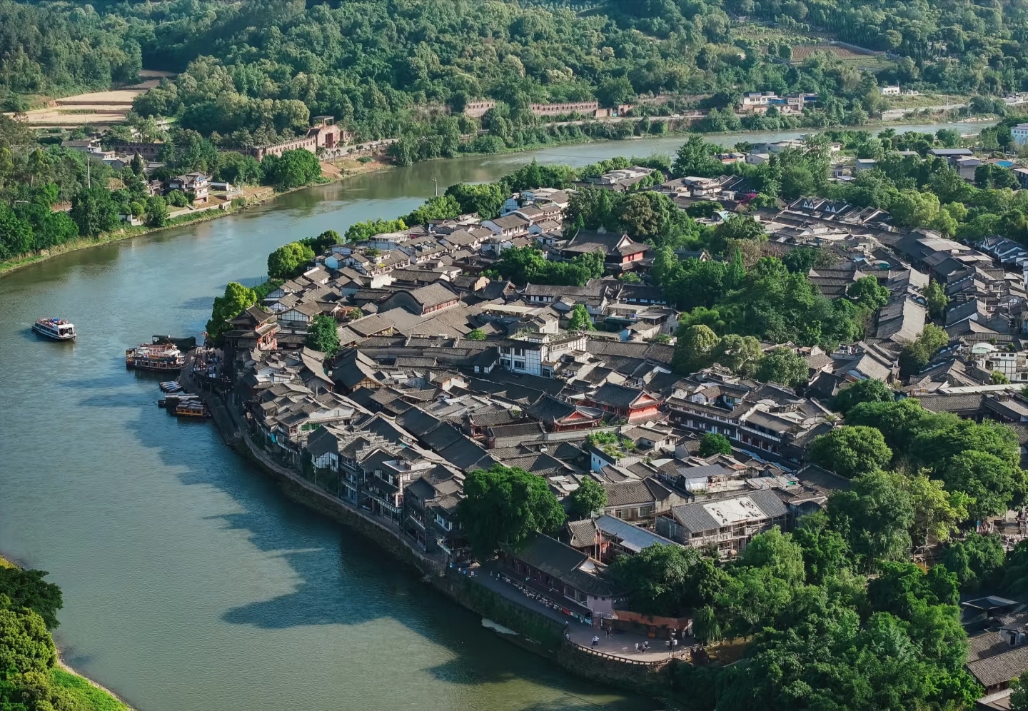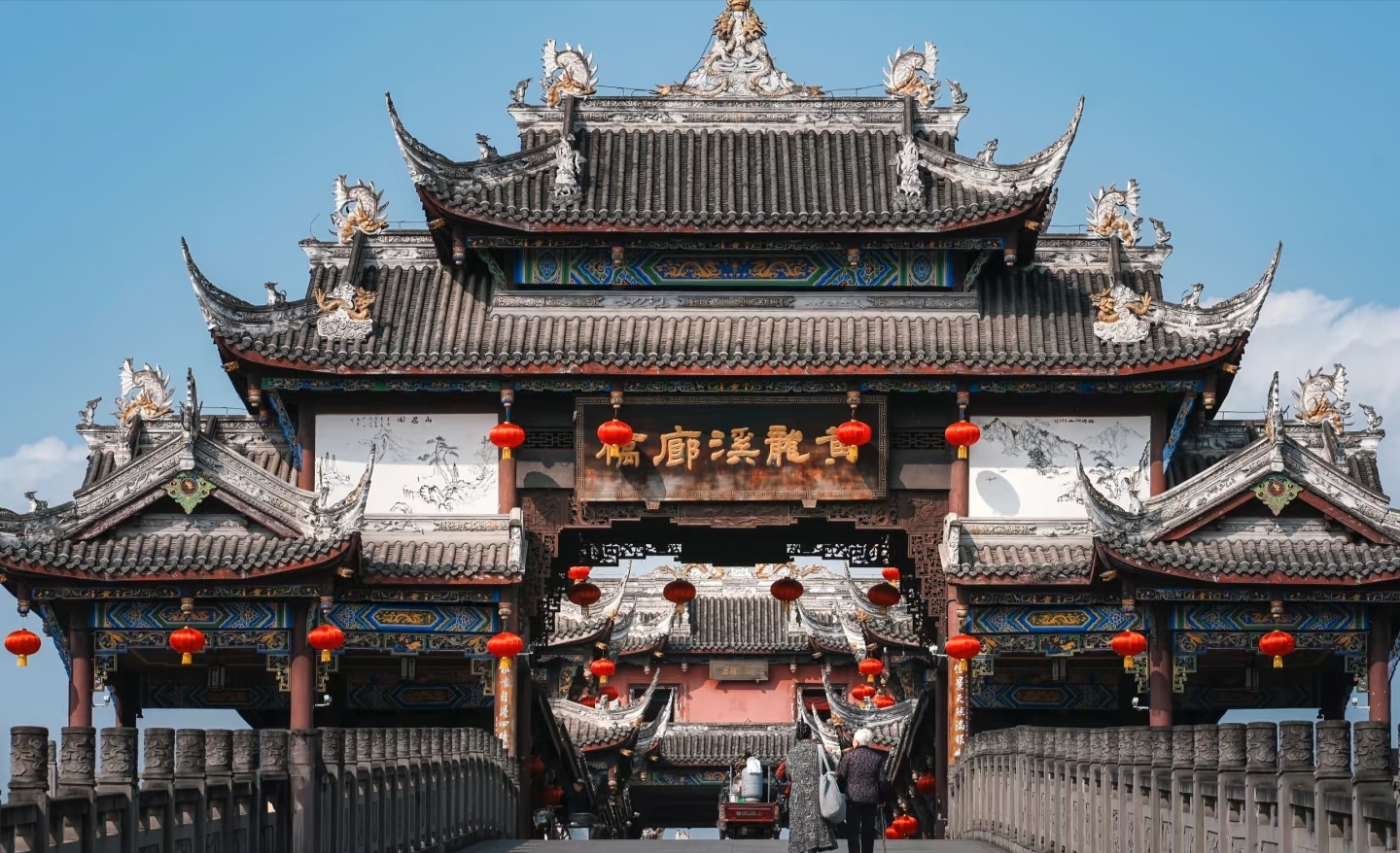 黄龙溪古镇 中国的“好莱坞“,天府第一名镇。古镇中贯穿古街的溪流穿街而下,时而湍急,时而舒缓,炎炎夏日里的戏水区更是消暑好去处,耍水的人们赤膊上阵,与水龙共舞,激情上演极具川西特色的“泼水节”。