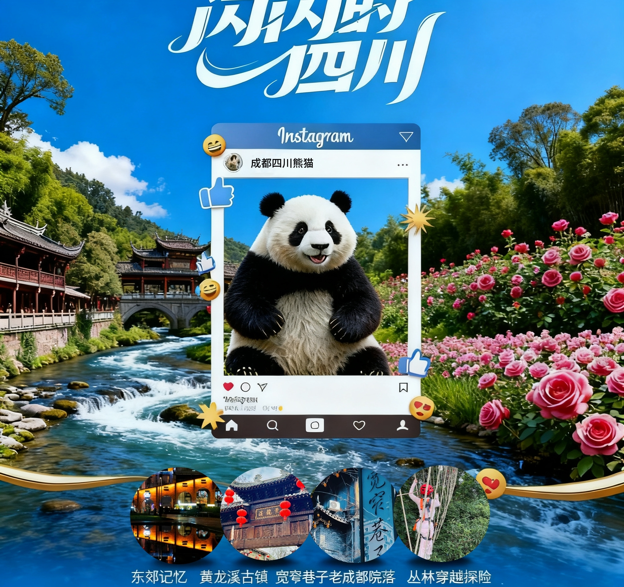 【20人团 特定班期住成都1环优质酒店】0购物0自费 |5日行程 明星导游陪同讲解 熊猫/古镇/网红打卡一次搞定 赠潮拍馆复古体验+黄龙溪湿身大战