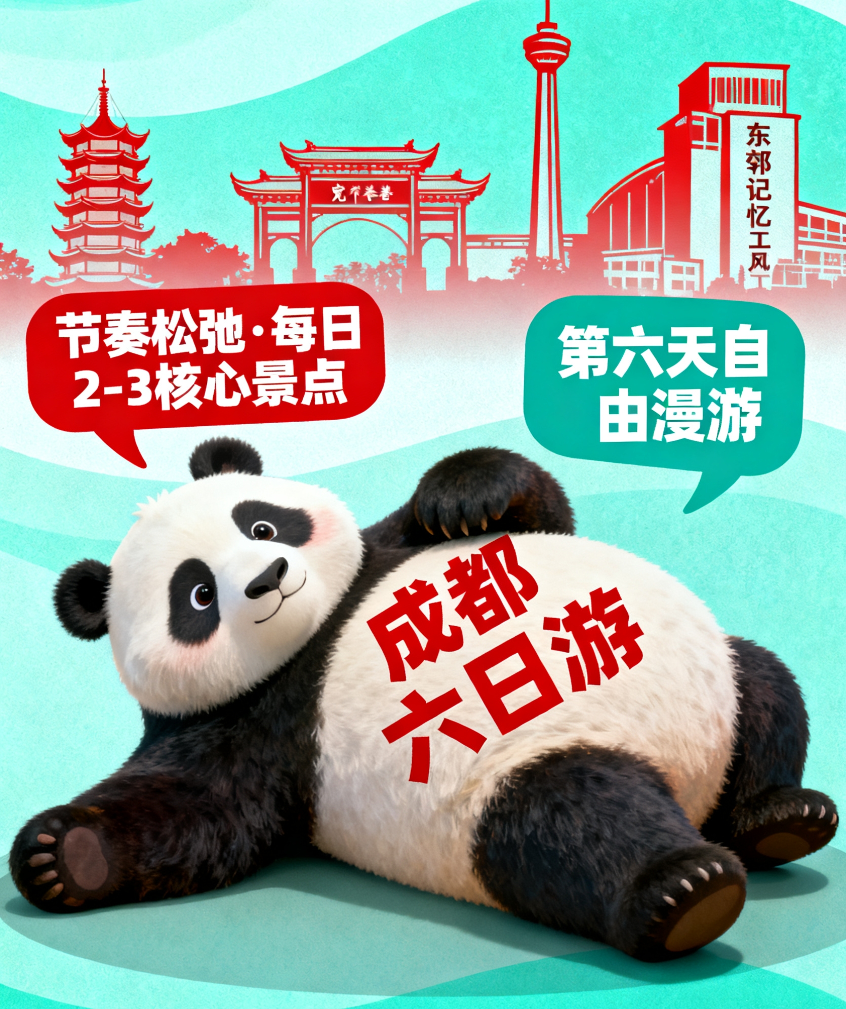 ★ 【自由时间充裕,填补遗憾】最后一天可自行游览成都市内各个景点,根据车次时间自由安排,由我社工作人员专车送您到机场/火车站,结束愉快的旅程。