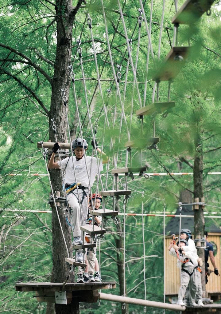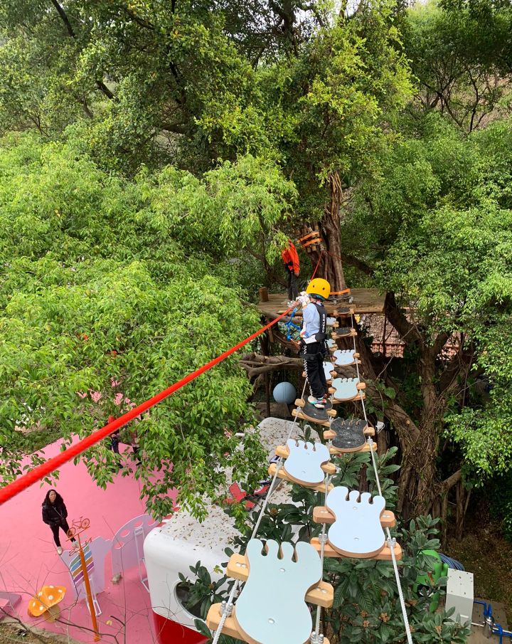 游览后前往飞越丛林。飞越丛林 通过树木将各种各样的障碍环节将连成一条线路,需要通过悬空桥梁、网道、步道、木桶、泰山秋千、飞狐索道和其他趣味环节等方式进行树木间的探险。 通过爬、滑、游、跨、跳、飞等动作越过所有障碍,到达终点。在整个运动中,汇集了高空、速度、力量、毅力等户外探险所必备的元素,为参与者提供了感官上的刺激。