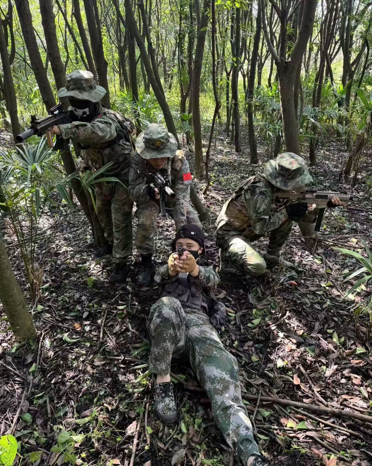 酒店早餐后前往丛林野战。丛林野战 玩了手机版吃鸡,来感受一下真实版的丛林枪战,穿上军训服,手持装备枪,配备野战装备,穿梭丛林之间,狭路相逢勇者胜,谁才能最后取得胜利。