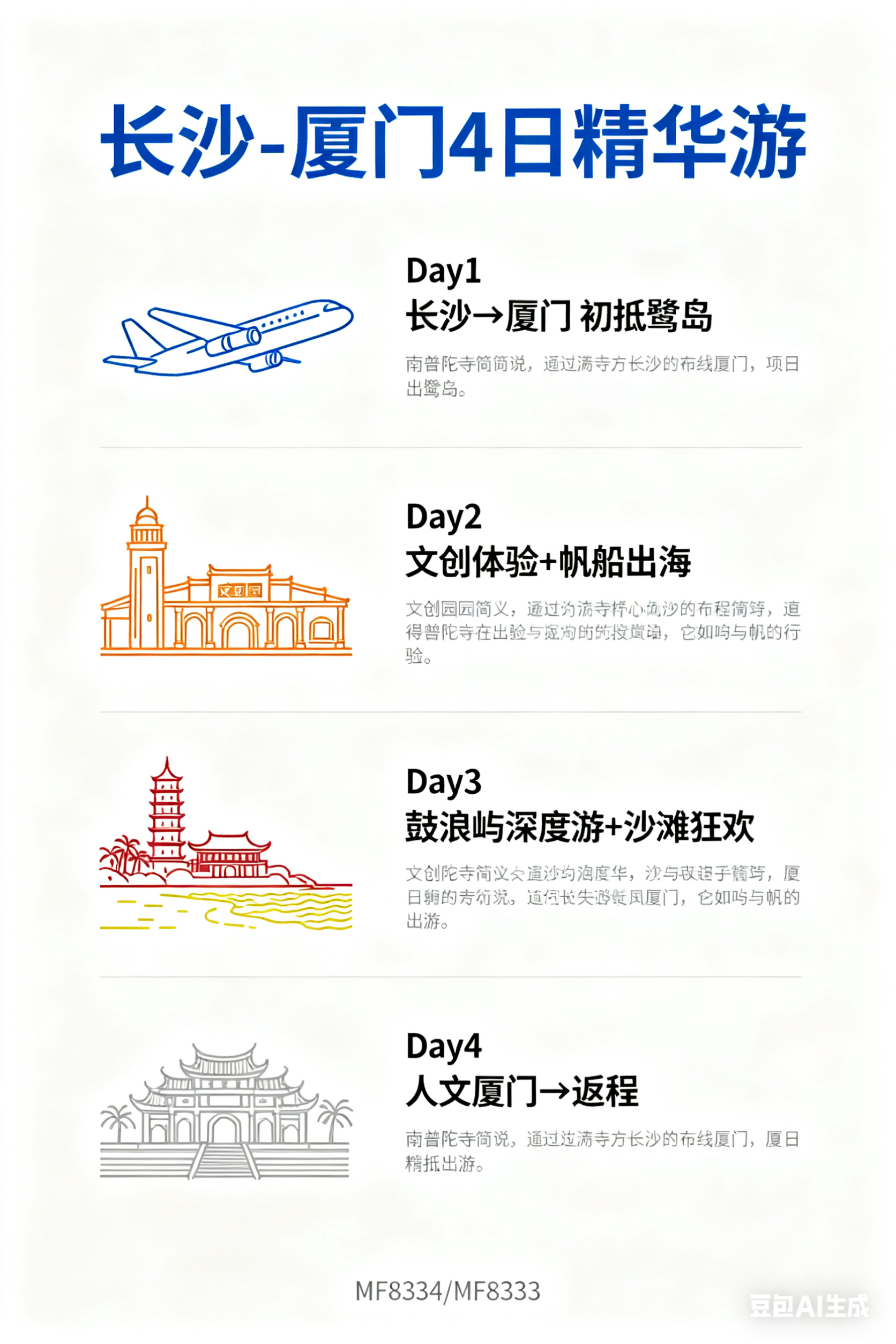 1、交通:长沙—厦门往返经济舱,含机场建设及燃油费;当地空调旅游大巴