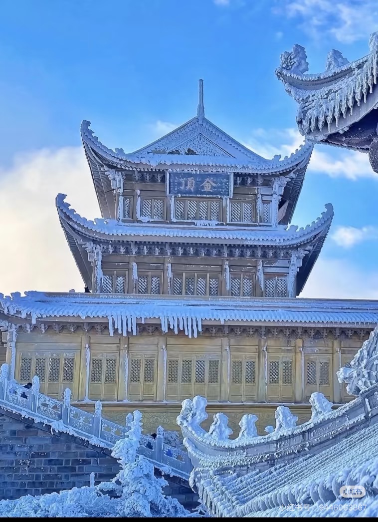 14:00 游览峨眉山金顶(2小时)乘坐观光车至雷洞坪,徒步至接引殿。