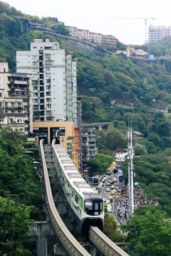在重庆轻轨2号线的李子坝站穿越房屋,每天都会上演轻轨穿楼越壑,空中飞驰而过的神奇一幕。现已经成了全国的网红景点,每天都有很多人拍轻轨穿过楼房的一瞬间。 游览完返回重庆酒店休息。